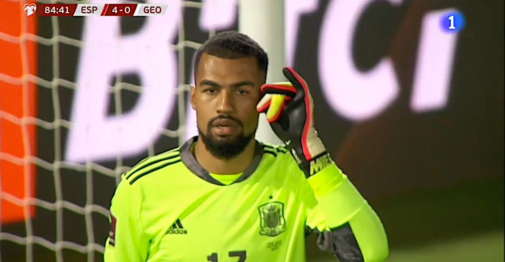 El meta natural de La Palma y que milita en un equipo de la liga inglesa, ha salido al terreno de juego en el minuto 73 del partido de la fase clasificatoria para el Mundial que España ha resuelto, esta noche en el estadio El Vivero, en Badajoz, con una goleada frente a Georgia (4-0), convirtiéndose en el tercer futbolista de Cartagena que luce la camiseta del equipo absoluto de fútbol en la historia después de José Carlos Castillo García Tudela (año 1931) y del meta Juanmi (año 2000).