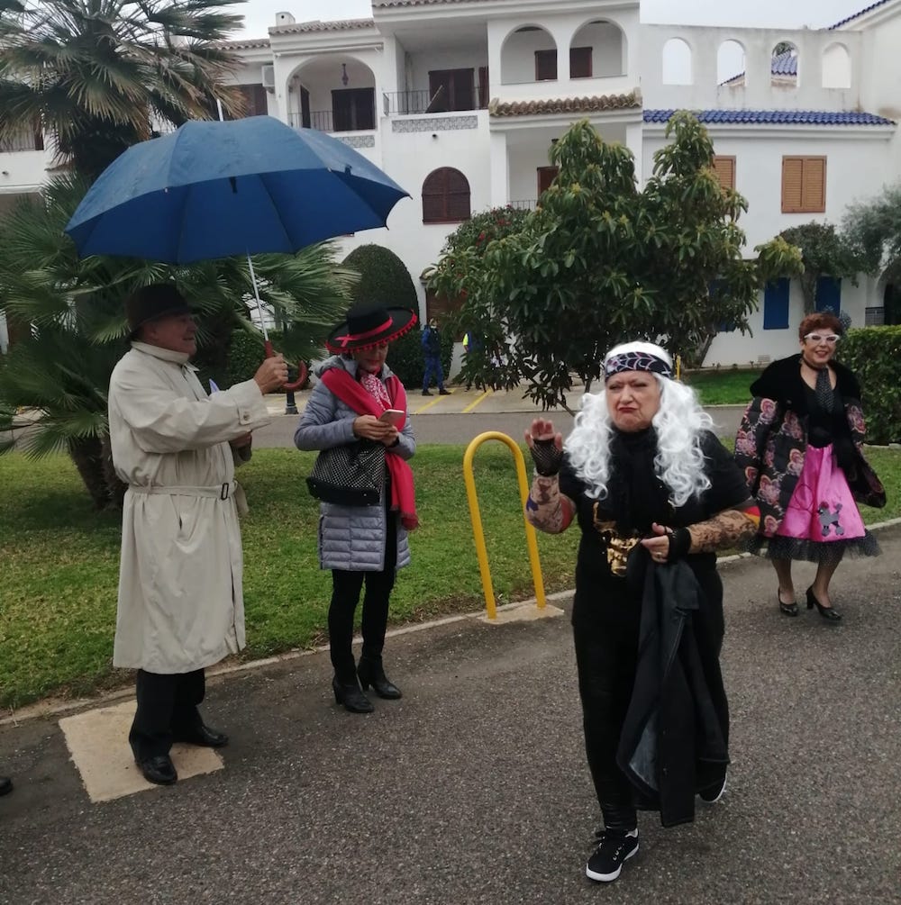 Pese a la presencia de la lluvia, un buen número de personas de diferentes edades lucieron variados disfraces en el carnaval organizado por los vecinos de la Urbanizacion Veneziola, con la colaboración de La Manga Consorcio y el Ayuntamiento de San Javier.