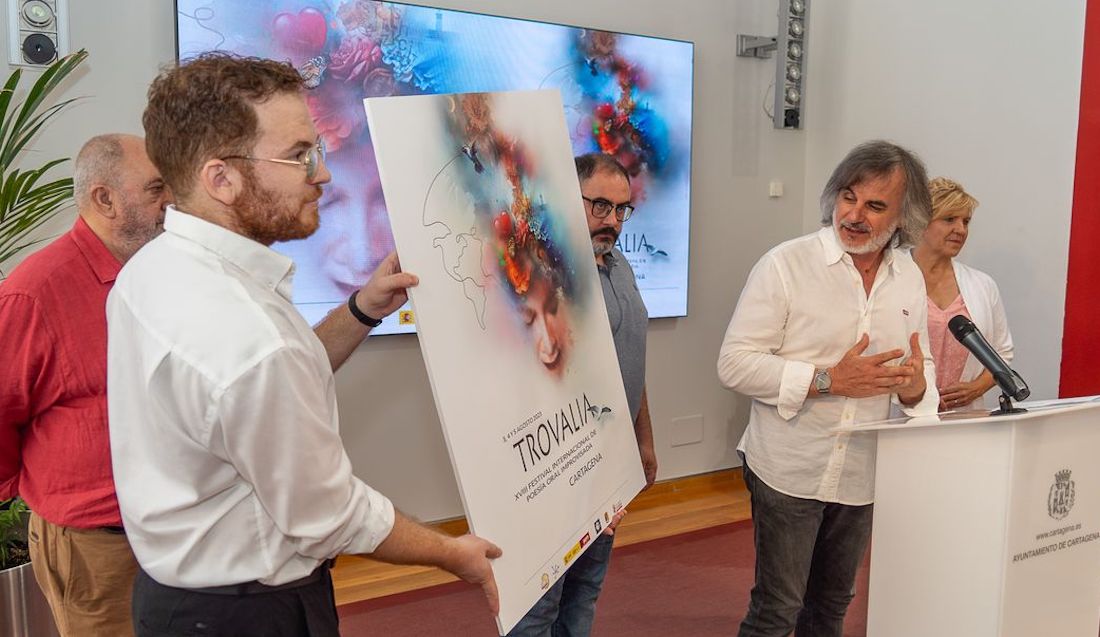 El festival internacional de poesía oral improvisada, que organiza la asociación trovera 'José María Marí', vuelve otro mes de agosto a Cartagena, siendo sus fechas de celebración del 3 al 5, contando en esta ocasión con repentizadores de Cuba, Colombia, Panamá y Puerto Rico, además de los troveros locales. Nazareth Navarro y Juan Tomás Frutos serán los presentadores. El cartel es obra del pintor Pedro Diego Pérez Casanova.