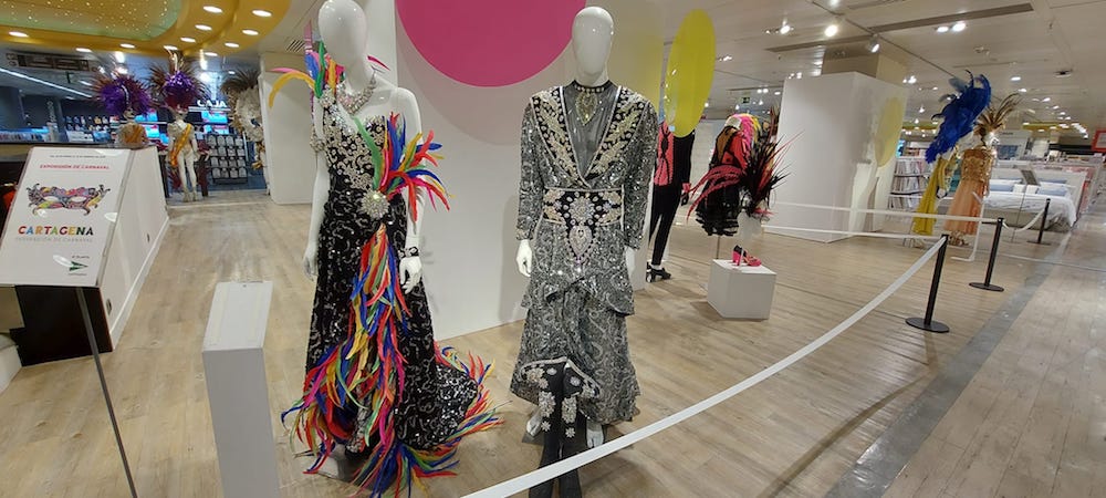 La sexta planta de El Corte Inglés, en la Alameda de San Antón de Cartagena, acoge una exposición de trajes de comparsas, que se puede visitar hasta el 21 de febrero, el mismo día en que finalizará el Carnaval de Cartagena 2023.