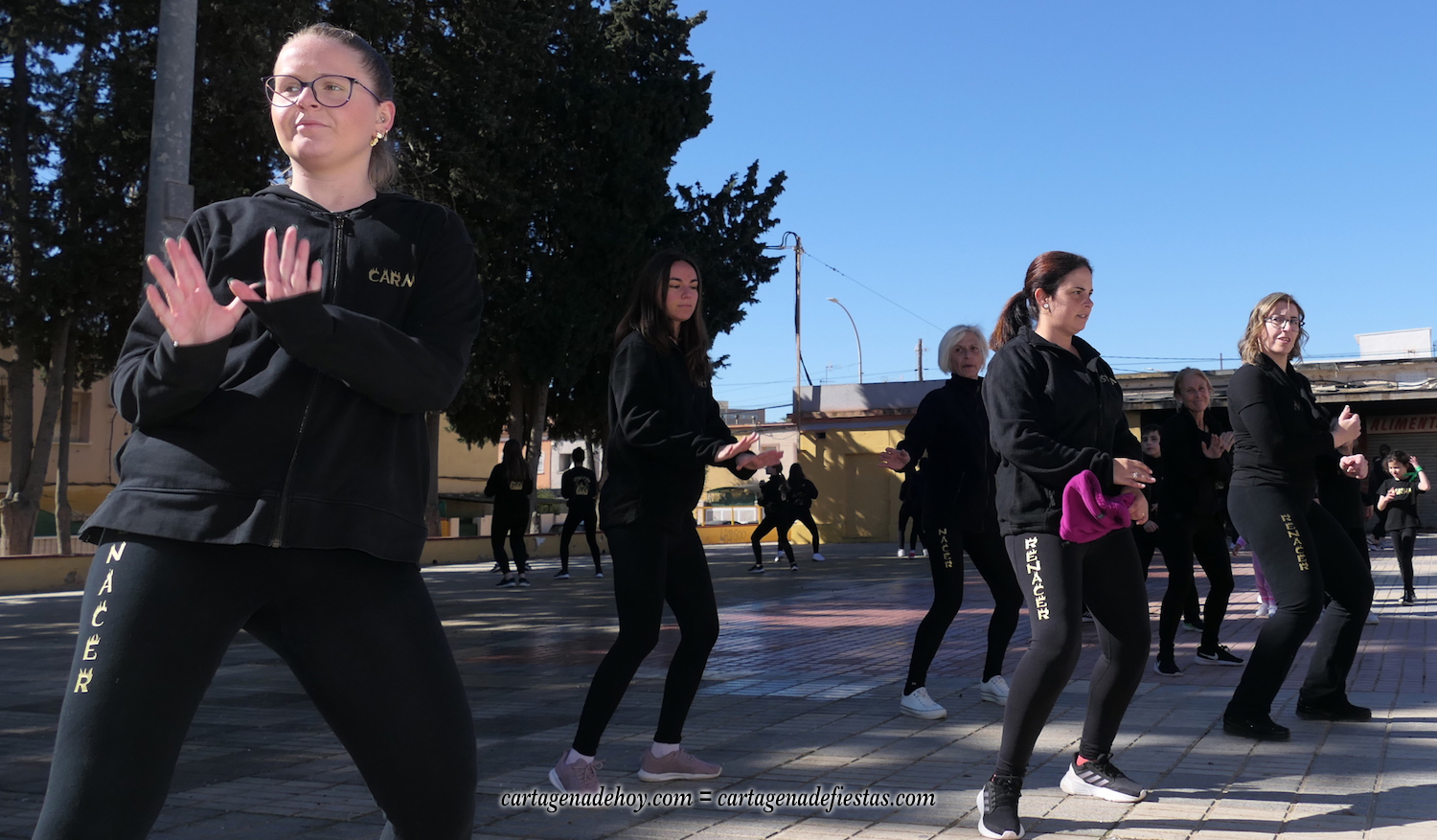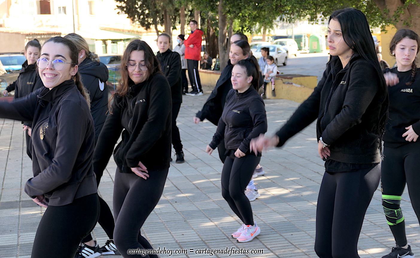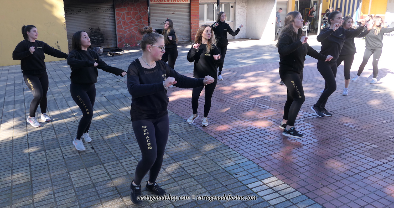 Durante la conversación, el grupo ensaya en la plaza Cronista Casal de la barriada Virgen de la Caridad, pues por la noche se desplazan a actuar en Los Alcázares en una escala más de este nuevo año, en el que, tras bailar en El Albujón en Navidad, también harán escalas en Aguilas, El Palmar, Torre Pacheco y en Cartagena, tanto en el gran carnaval que comienza el próximo día 10 como en otros eventos que vendrán. "Somos un grupo sin ánimo de lucro que nos gusta colaborar cuando nos llaman", explica Lorena Ortiz.