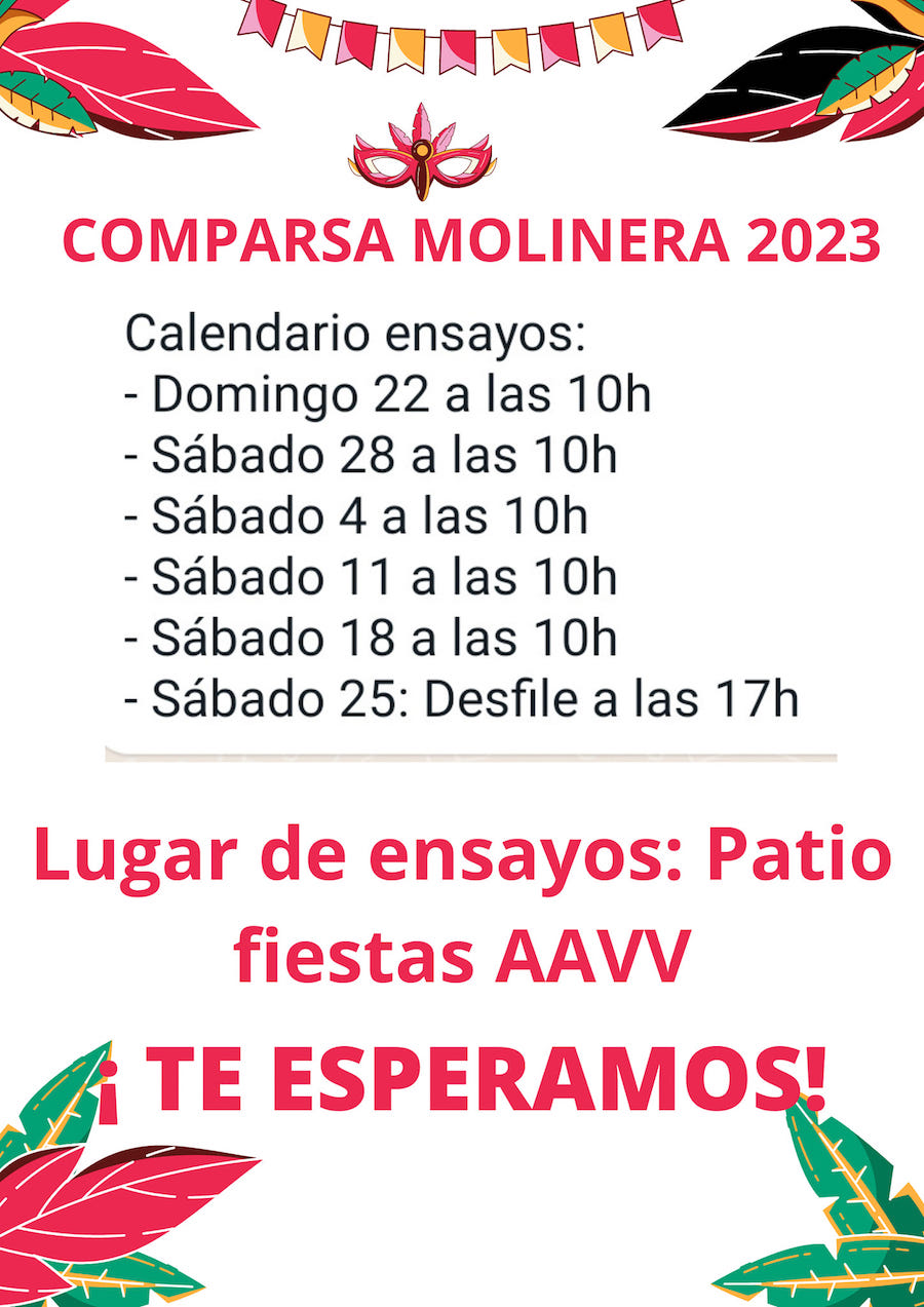 La asociación de vecinos de Nuestra Señora de la Soledad de Molinos Marfagones pretende sacar un grupo carnavalero este año con personas del pueblo que tengan a partir de 5 años de edad. Ya hay una veintena de personas inscritas.