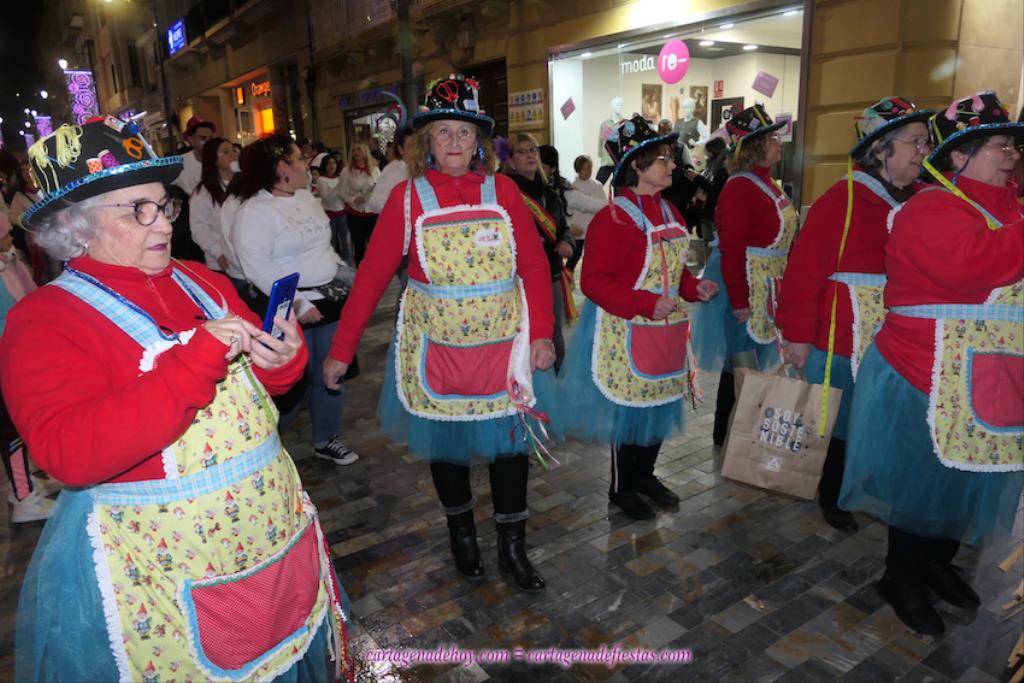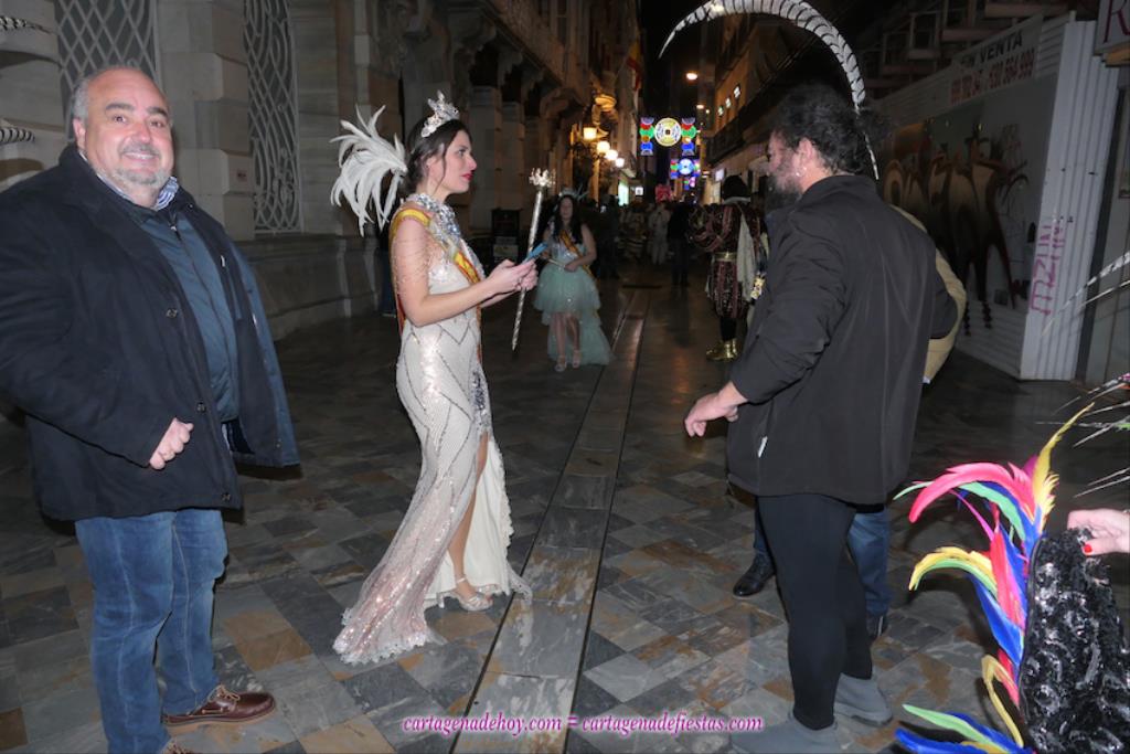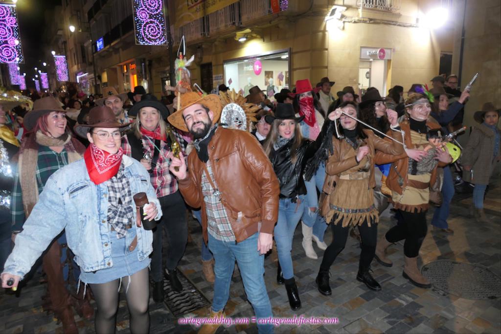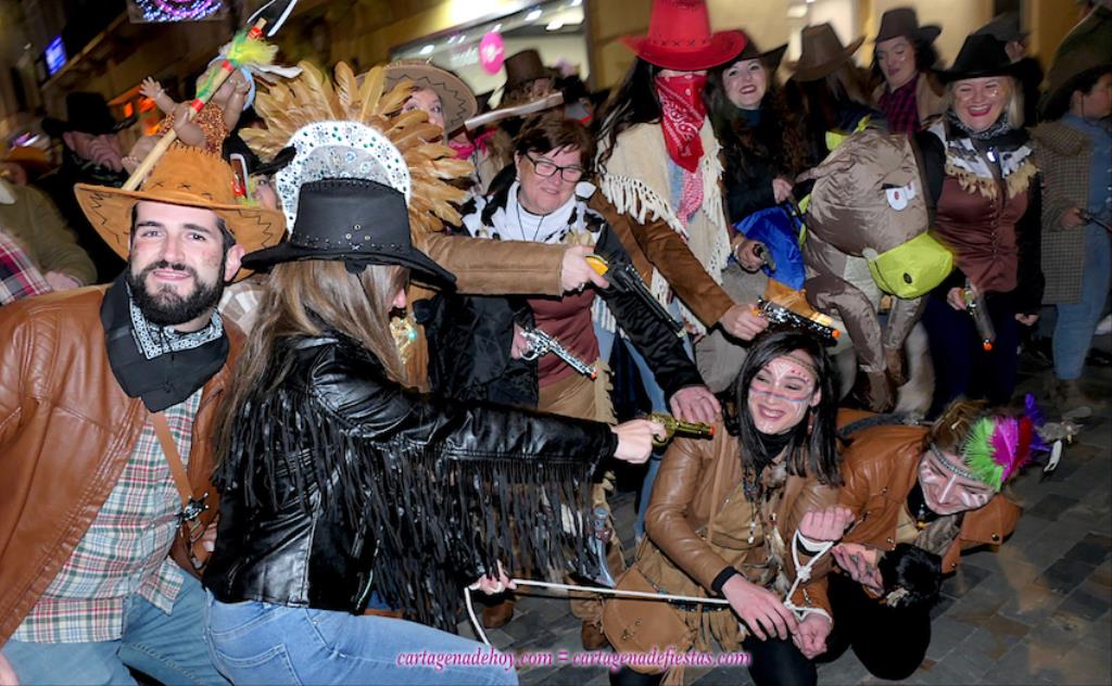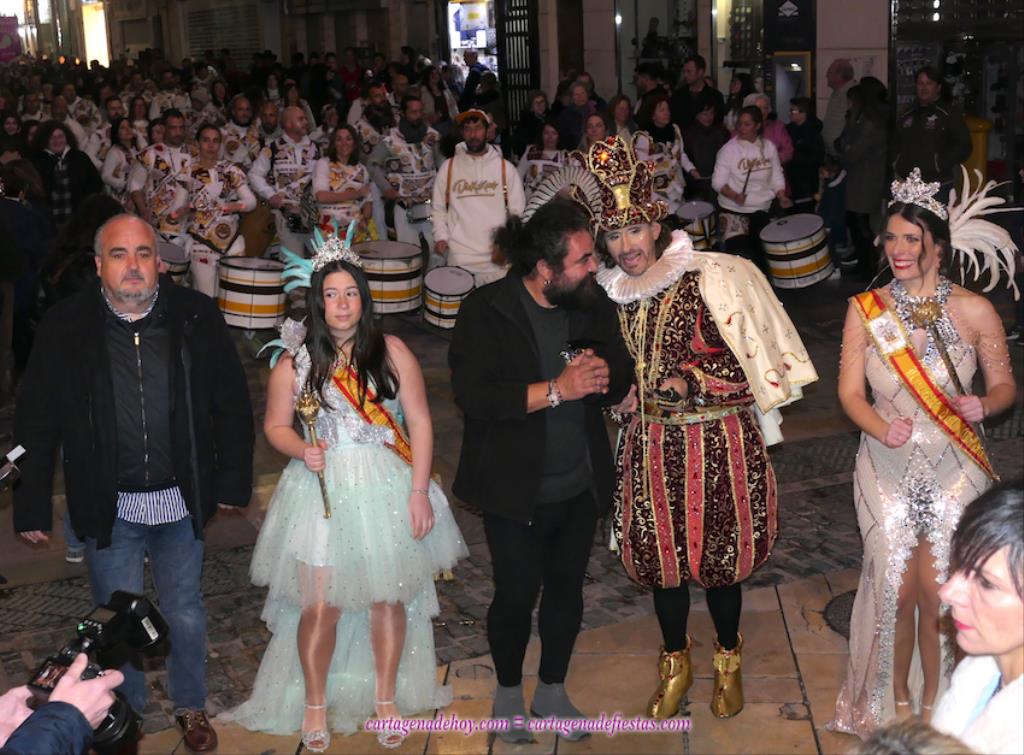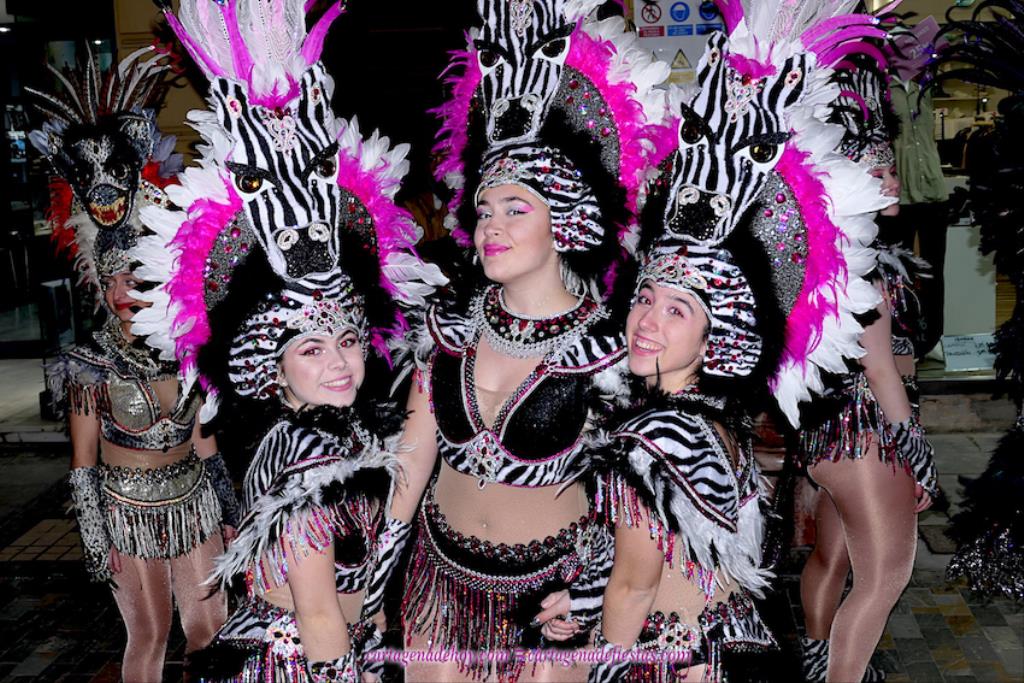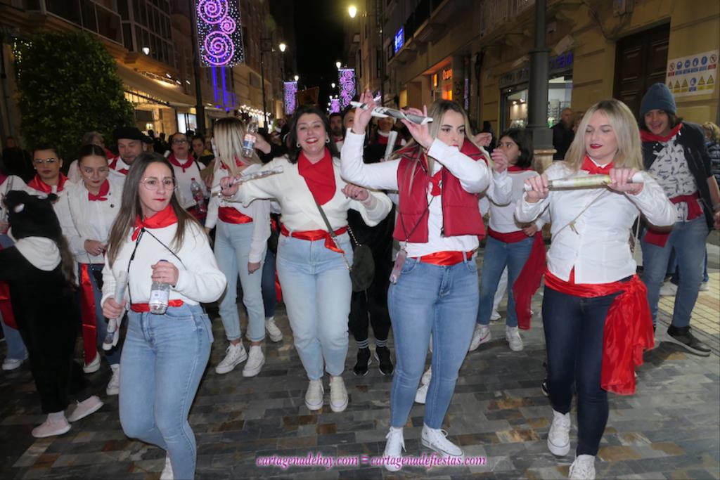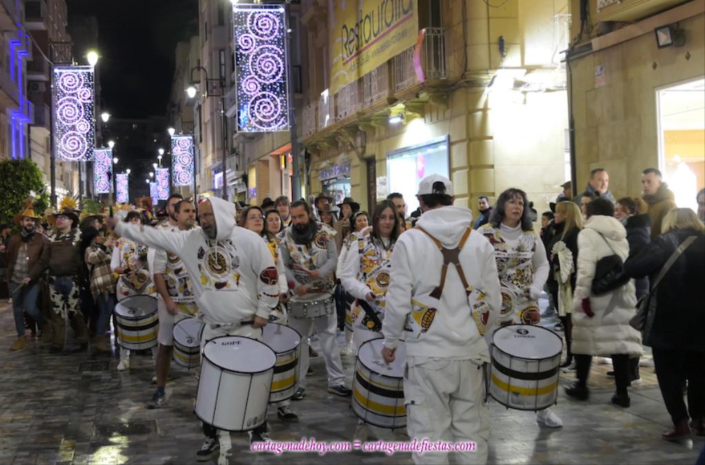 Junto a ellos, Eduardo Pignatelli, quien se ha estrenado como presidente de la Federación de Carnaval luciendo un colorido disfraz. El grupo se ha completado con la llegada del pregonero (‘El Sevilla’) y el edil de Festejos, Juan Pedro Torralba, marchando hacia la plaza del Ayuntamiento con el ritmo de los tambores y la animación de comparsas y grupos coreográficos de Renacer y Salgueiro de la Barriada Virgen de la Caridad; Aradia; Perseídas; Limón&Sal de Los Dolores; Paraíso del Polígono Santa Ana; Los Gnomos de El Estrecho de San Ginés Unos iban con disfraces muy simpáticos, como los pistoleros de y el tributo a San Fermín, con ‘astado’ incluido.