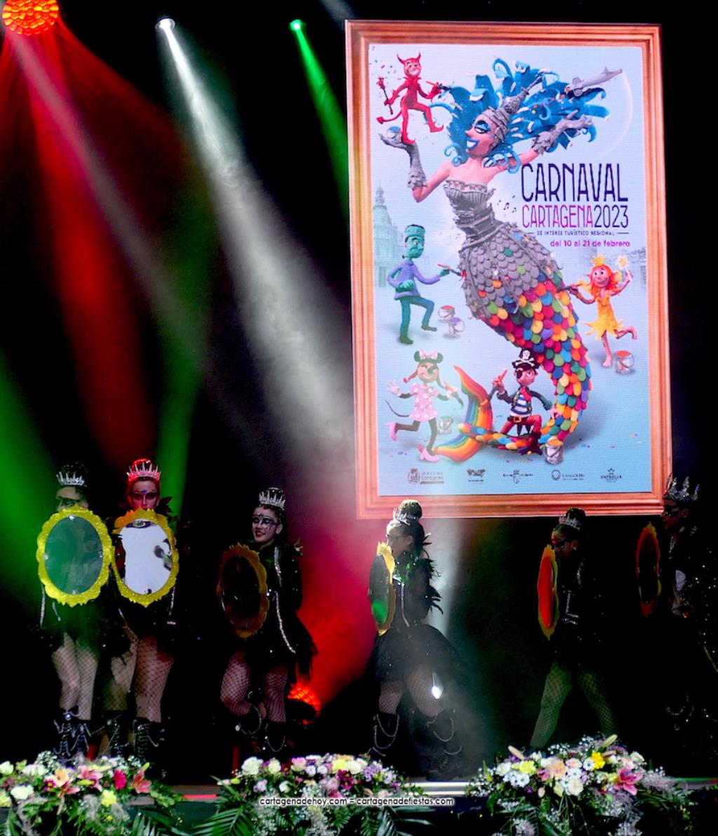 El certamen se ha celebrado en el escenario (hoy sin suplemento) del pabellón central de la calle Wssell de Guimbarda de Cartagena con presentación a cargo de María José Navarro. Antes de darse a conocer el resultado final, el presidente de la Federación del Carnaval de Cartagena, Eduardo Pignatelli, ha dado las gracias a los grupos participantes resaltando que en ellos está el futuro de esta gran y popular fiesta cartagenera.