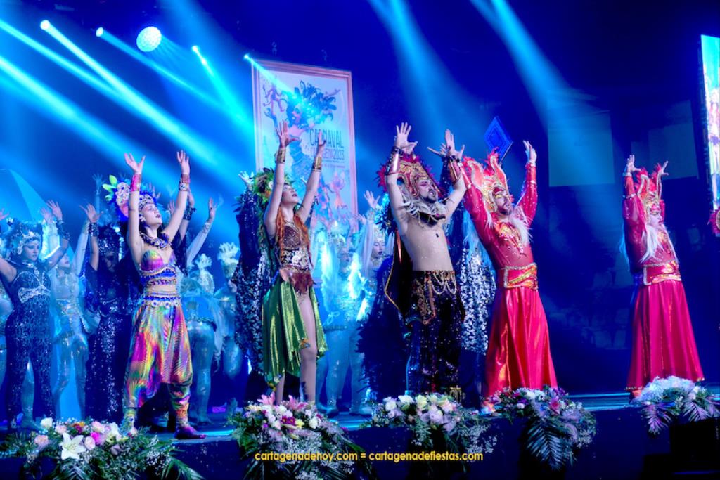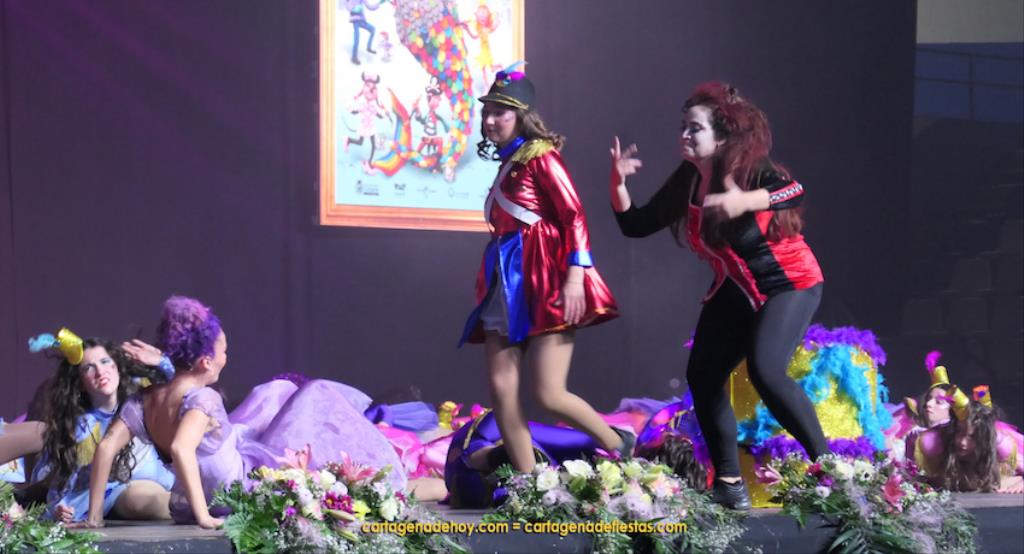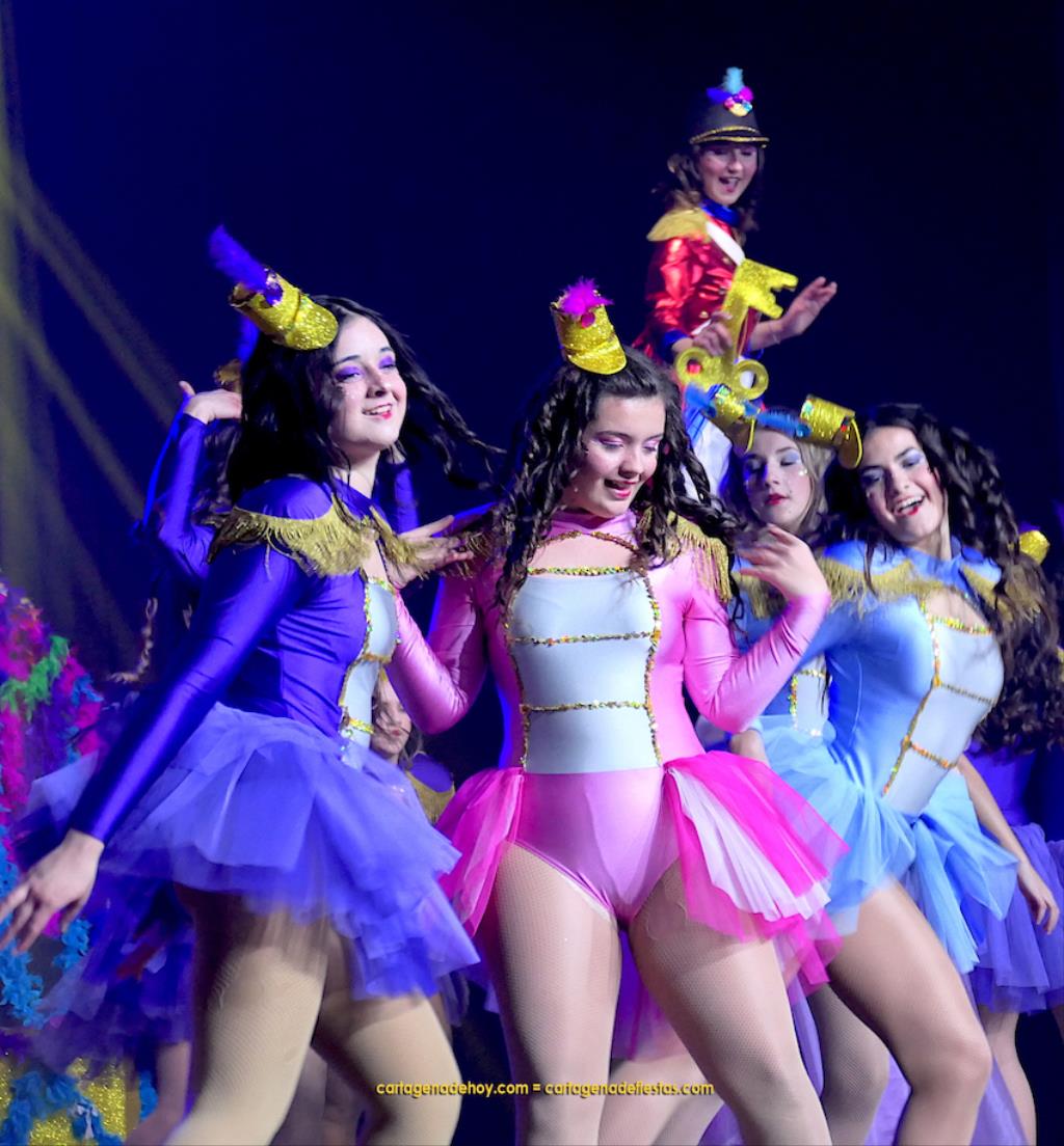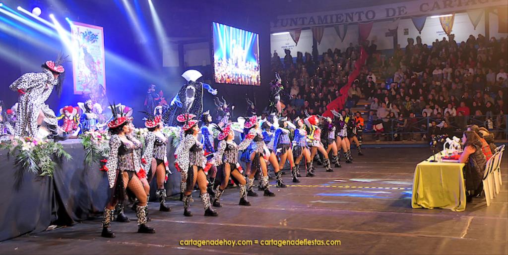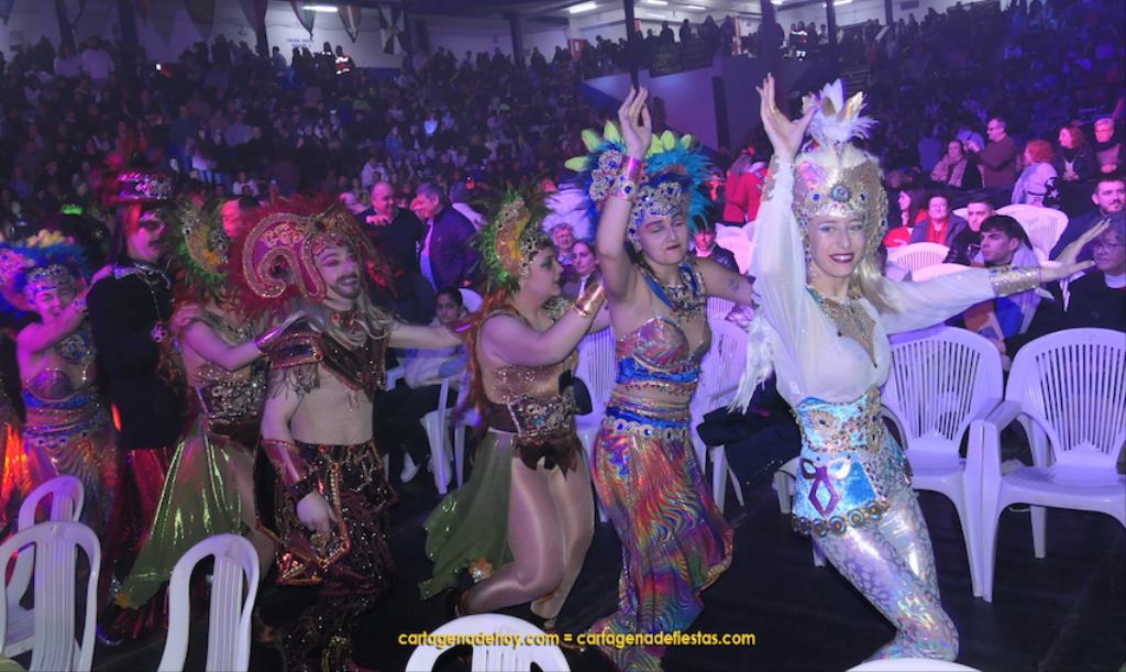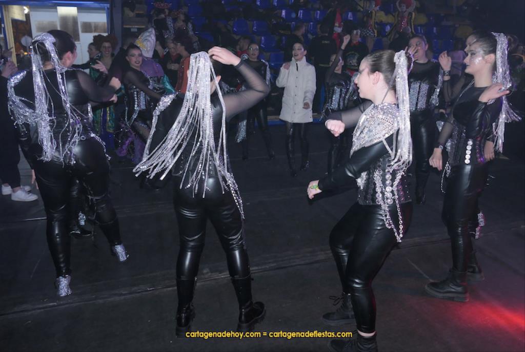Los restantes grupos que actuaron, en una edición presentada por la periodista Silvia Mateo, fueron Escuela de Danzas Carmen, El Meneo y Escuela de Begoña Navarro (no lo hemos puestos por orden), además de ‘Mamá yo quiero’, grupo yeclano surgido en 2016 y que forman madres de carnavaleros de ‘Destello’. Después de lo acaecido en la gala de elección de la reina del Carnaval, en la que se presentó una candidata con 59 años de edad, su presencia anoche sobre el escenario cartagenero es empujón a derribar esa muralla que parecía limitar el trono o la participación en coreografías sólo para jóvenes. Se dice (al margen del capítulo físico) que la edad real es la de mente… y bien cierto que es.