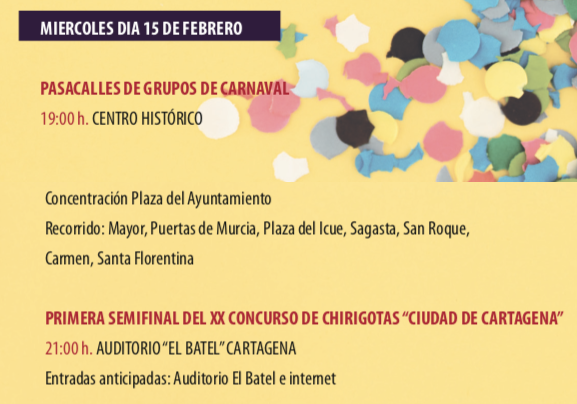 Agenda del miércoles carnavalero