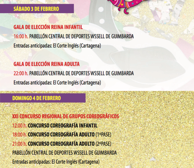 Este sábado es cuando se eligen las reinas infantil y adulta de la gran fiesta carnavalera en el pabellón central en dos galas distintas, comenzando una a las cuatro de la tarde y otra a las diez de la noche. En esta última se incluye también el combate dialéctico entre Don Carnal y Doña Cuaresma. En ambas hay actuaciones destacadas de chirigotas y coreografías de la edición anterior.