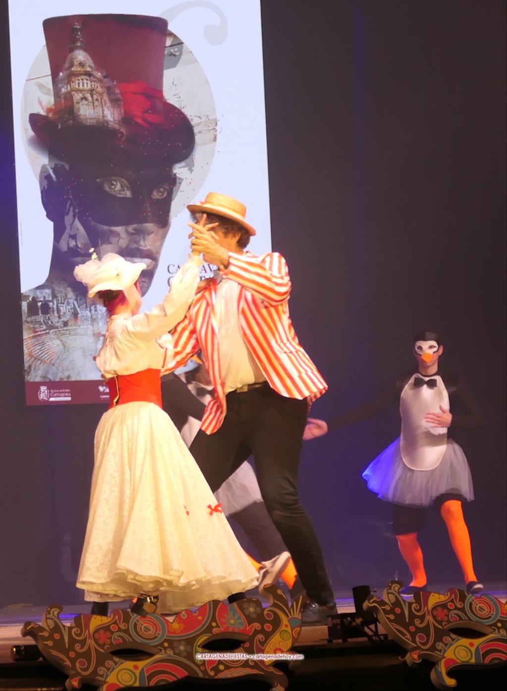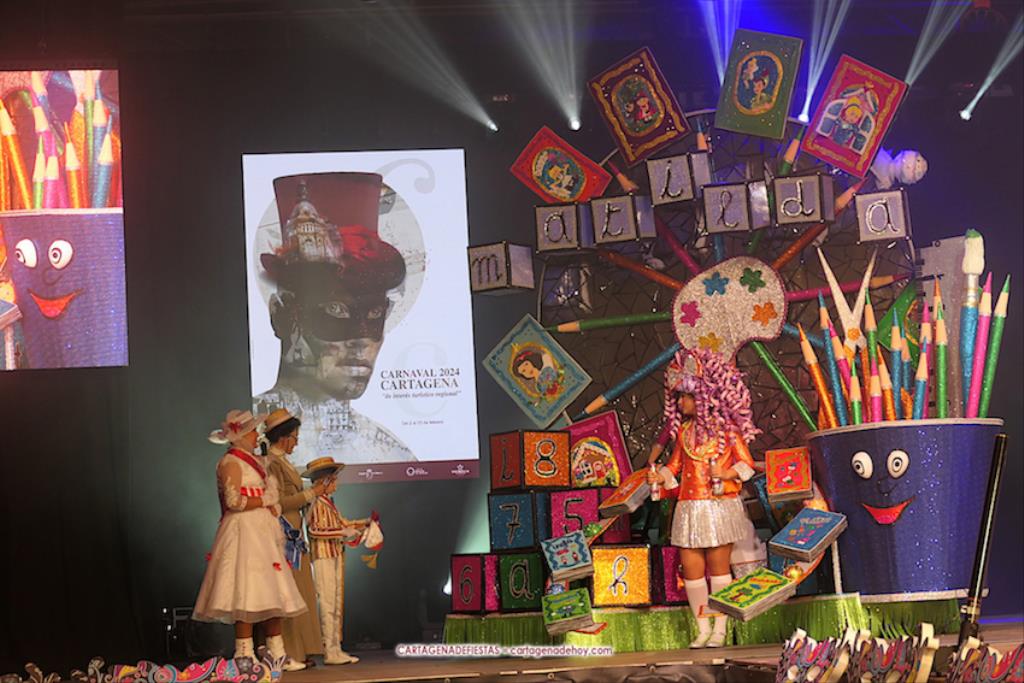 La entrega de galardones ha sido el epílogo de una entretenida gala celebrada en el pabellón central de Cartagena, que arrancó con la proyección de vídeos de Repsol, de patrocinadores y del carnaval como preludio a un diálogo entre la reina de 2023 y el presidente de la Federación del Carnaval, Eduardo Pignatelli. Después se han alternado actuaciones, como Renacer y MarDance, con los desfiles de las cinco candidatas. Al concluir, y mientras deliberaba el jurado, se han estrenado como Don Carnal y Doña Cuaresma infantiles, respectivamente, los primos Lucas Cegarra Sánchez y Elena Ortega Sánchez, integrantes de la comparsa Peché de El Llano del Beal.