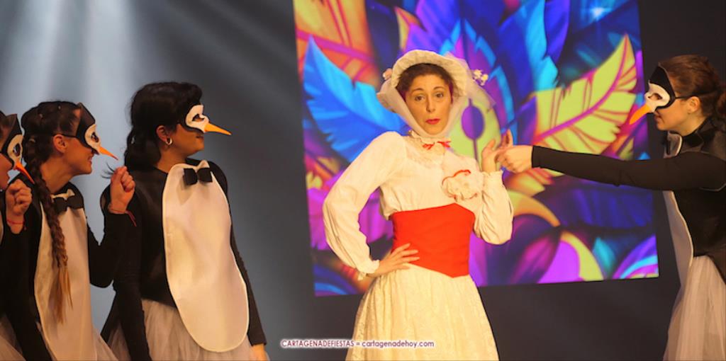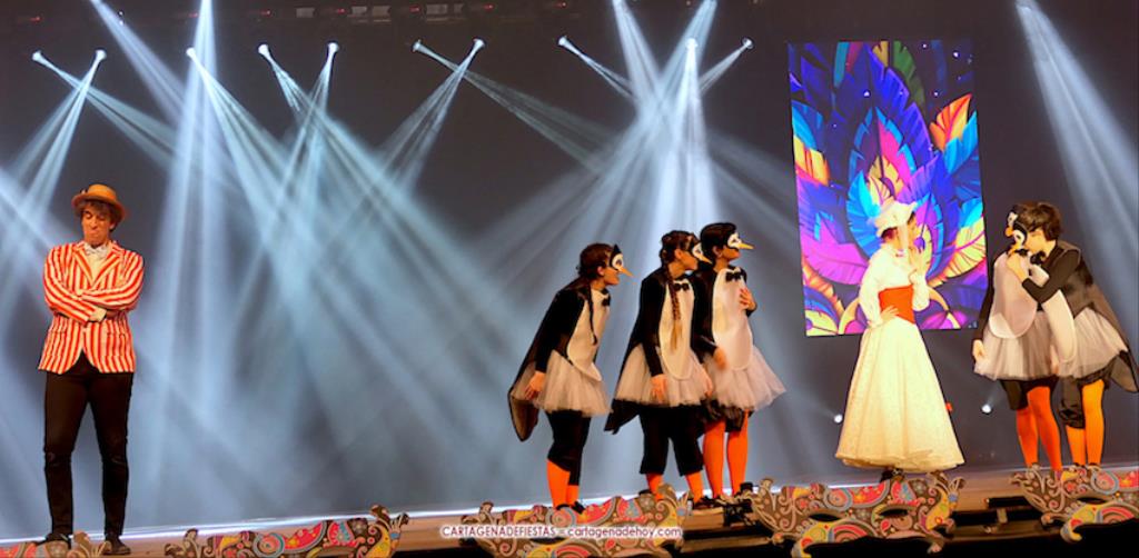 El espectáculo central ha sido 'Mary Poppins' a cargo de la compañía 'Ditirambo', con espectacular aparición elevada de la popular institutriz y un repaso a las más conocidas canciones de la película con el apoyo del deshollinador Bert y de grupos de pingüinos y otros personajes. El musical ha culminado con un pasacalles dentro del pabellón que ha puesto mucho colorido, animación y júbilo a la gala antes de tener lugar el desenlace de los nuevos rostros de reinas y damas de 2024. Un último apunte. De autoridades sólo vimos a la edil socialista Isa Andreu.