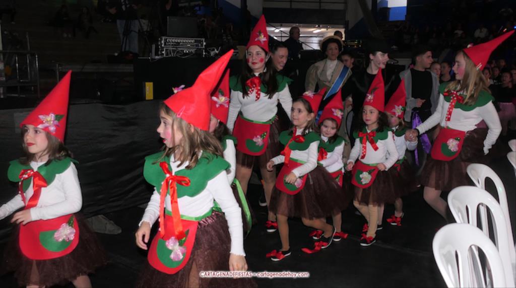 La primera dama de honor ha sido Natalia García García, del Estrecho de San Ginés y de la comparsa Los Gnomos, mientras que segunda dama de honor es el título conseguido por Triana Cámara Requena, de Ilusión de Galifa, completando el cuadro de honor Evelín Marín Chacón (Detallitos de Vista Alegre) como 'Miss elegancia' y Alba Marín Morales (Salgueiro Kids) como 'Miss originalidad'.