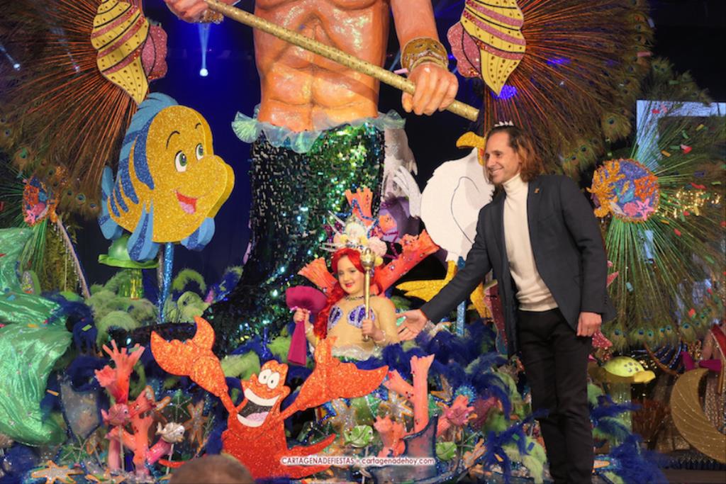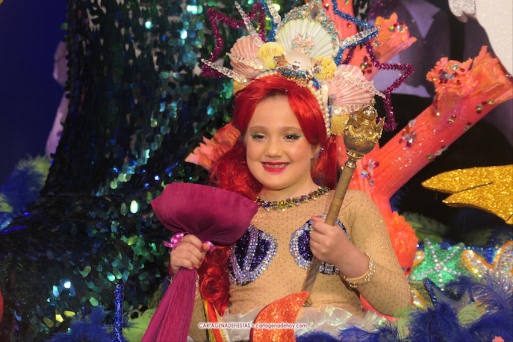 'Desde lo más profundo' es el nombre de la fantasía creada por José Antonio Hernández y Pablo Marinar (Don Carnal 2023) para la comparsa Ipanema Baby que ha envuelto el buenhacer sobre el escenario de la simpática sirenita Martina García Usero, logrando el título de 'Reina infantil del Carnaval de Cartagena 2024'.