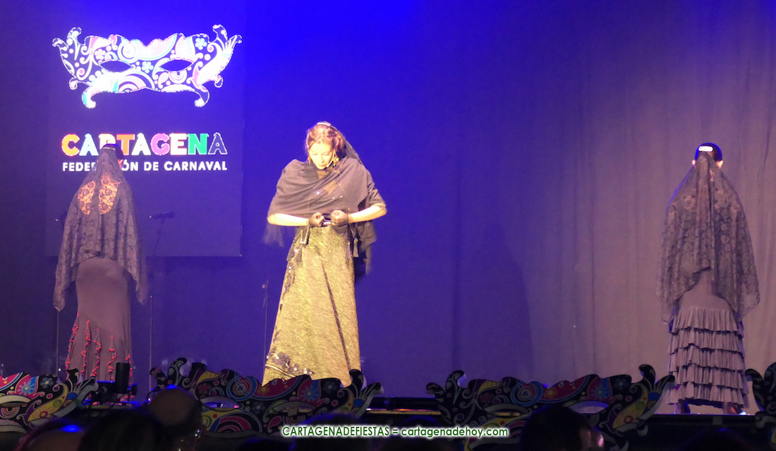 Aunque habían hecho fugaces apariciones con otras indumentarias en diferentes lugares el pabellón, una saeta flamenca con doña Cuaresma abrió la presentación oficial de ambos en la gala de elección de reina. Dejaba claro el sentir de la defensora del comportamiento más serio y religioso.