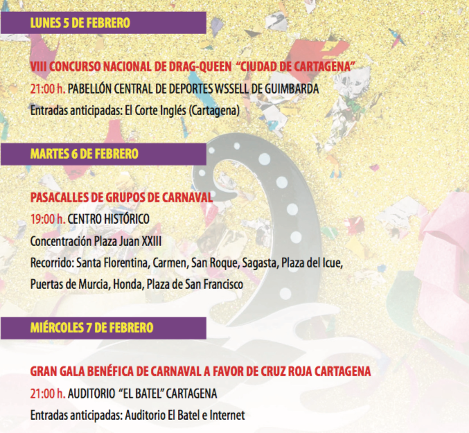 Agenda del Carnaval de Cartagena
