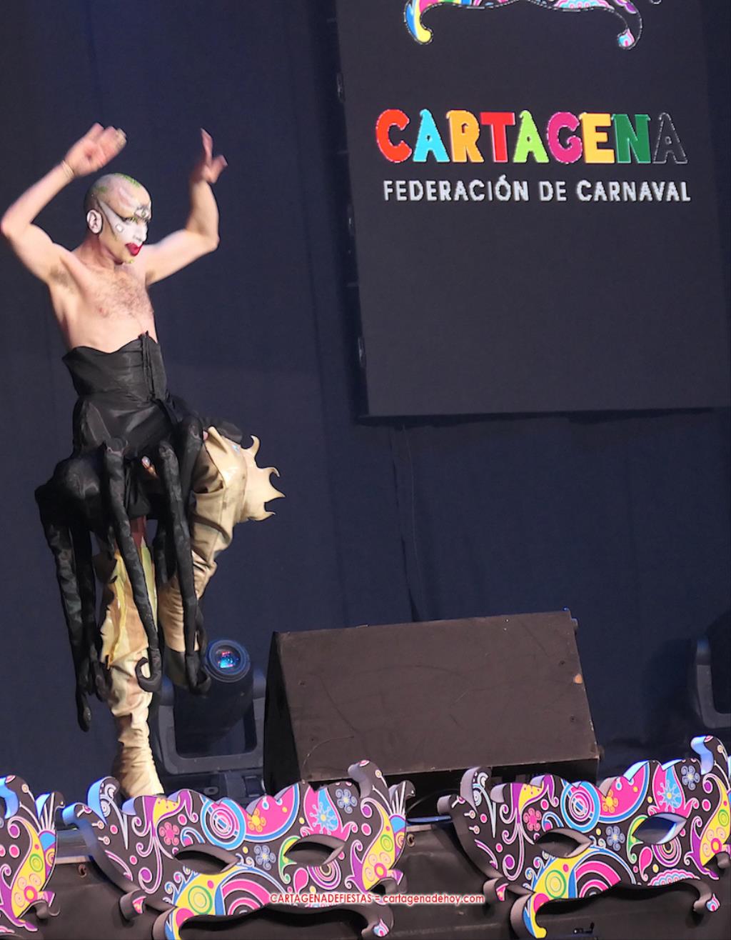 Curiosamente, los dos representantes de Cartagena habían preparados sus espectáculos basados en el circo. David Lázaro Martínez, de El Llano del Beal, había participado en segundo lugar como 'Drag Iridra', a quien se observa en la foto que figura bajo estas líneas.