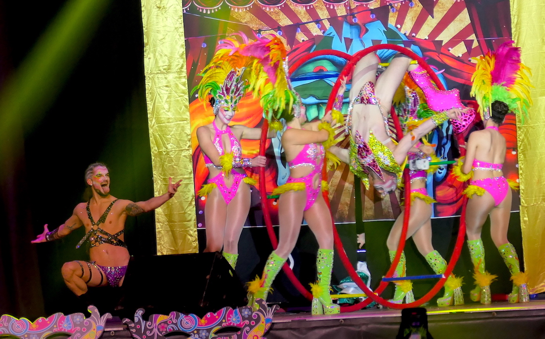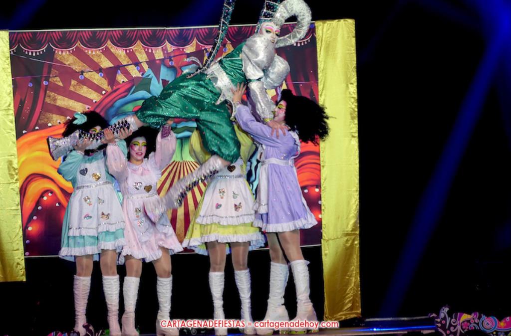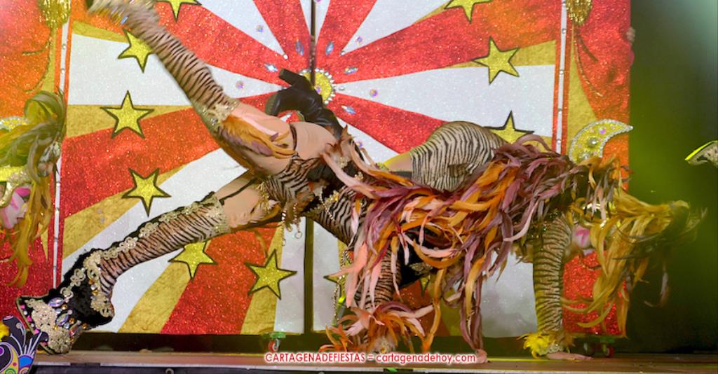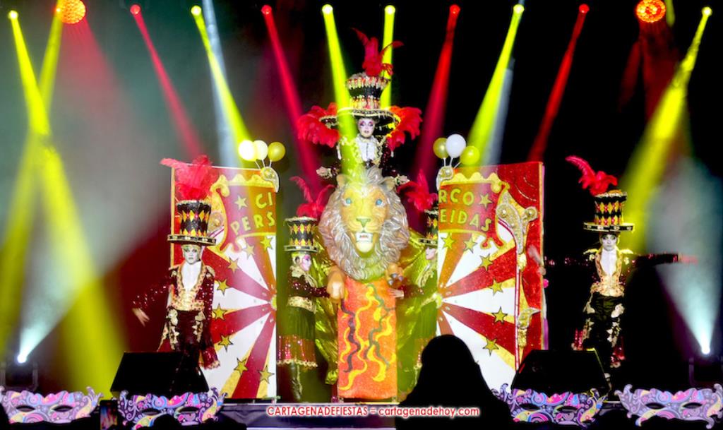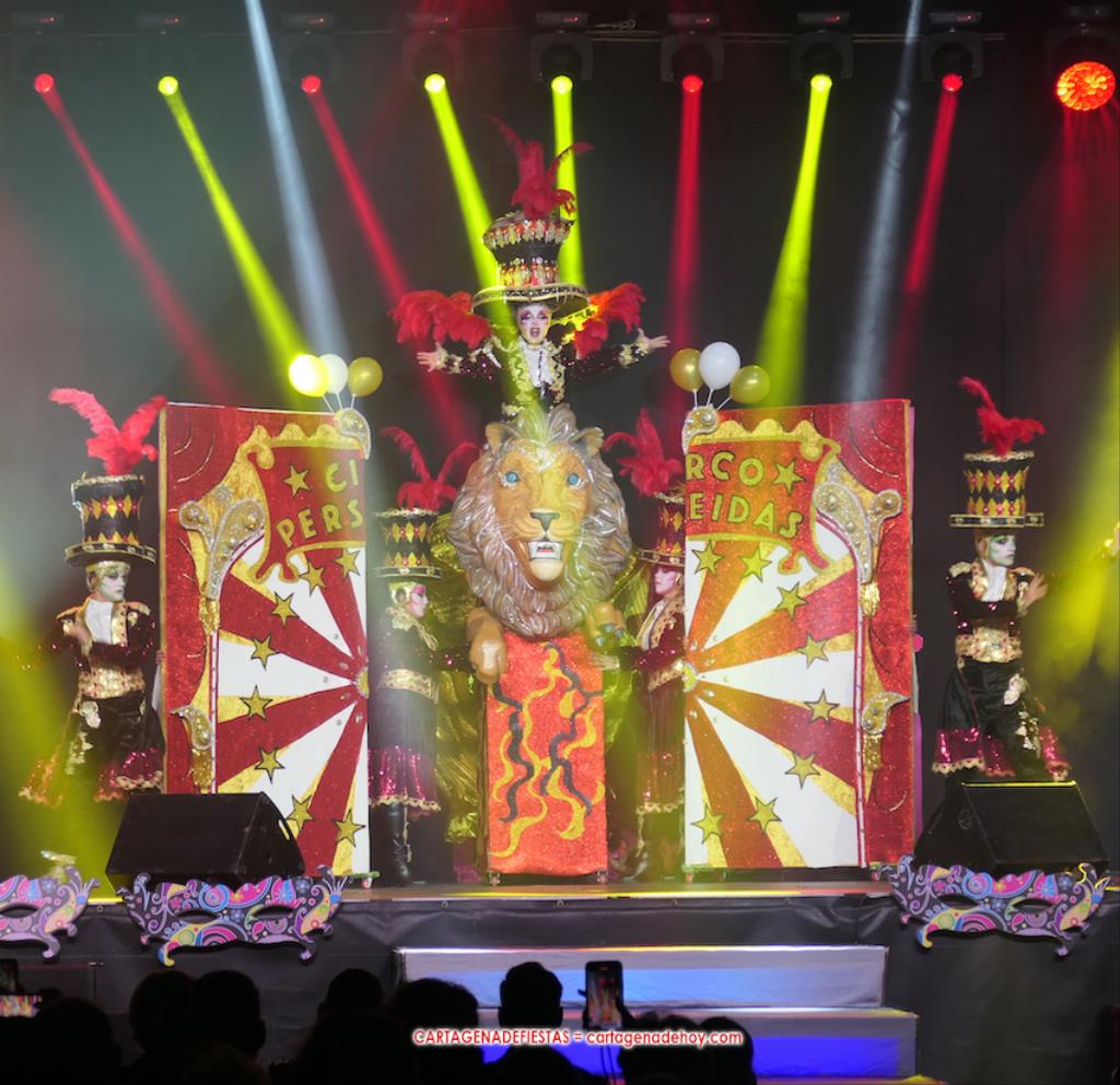 El título del certamen ha vuelto a quedarse en Cartagena, como sucedió en 2020 y 2022 con 'Drag Perseídas' y 'Drag Nébula', respectivamente, para en 2023 ser conquistado por el murciano 'Drag Liak'. Ahora, la 'dragona' de la comparsa Perseídas ha recuperado el trono tras una brillante actuación sobre el escenario de Francisco Bernal Ayala, de 28 años de edad, y su equipo de 'artistas y animales' circenses, dentro de la fantasía 'Sea bienvenido al gran Circo Perseídas'. Por cierto, el número estuvo dedicado a Pilar, una de las fundadoras de Perseídas y que falleció recientemente.