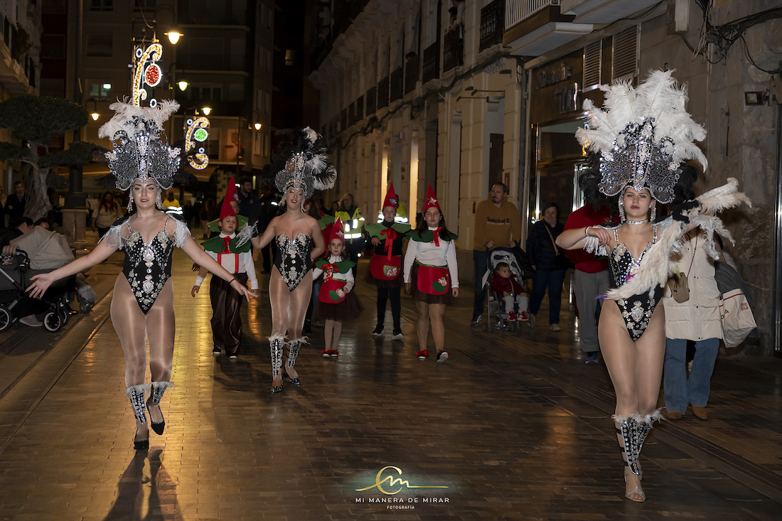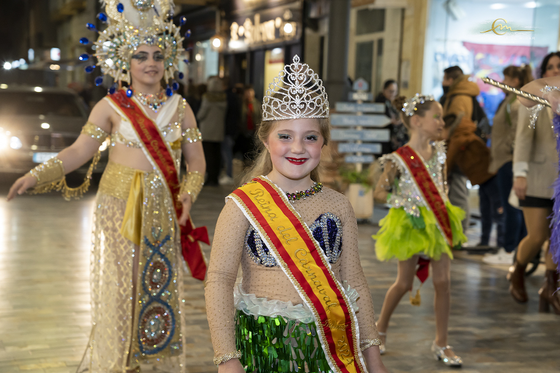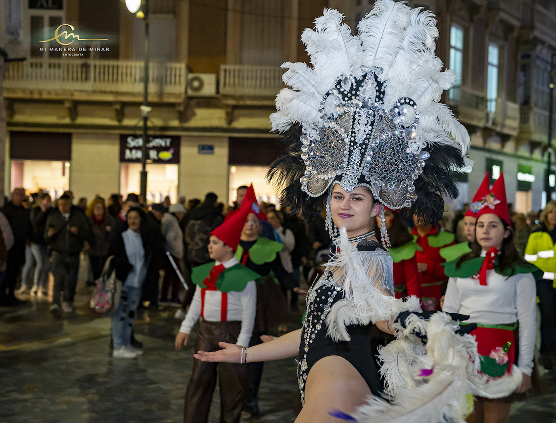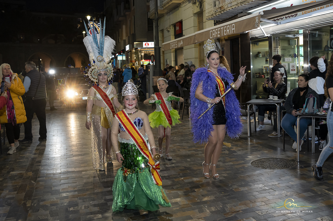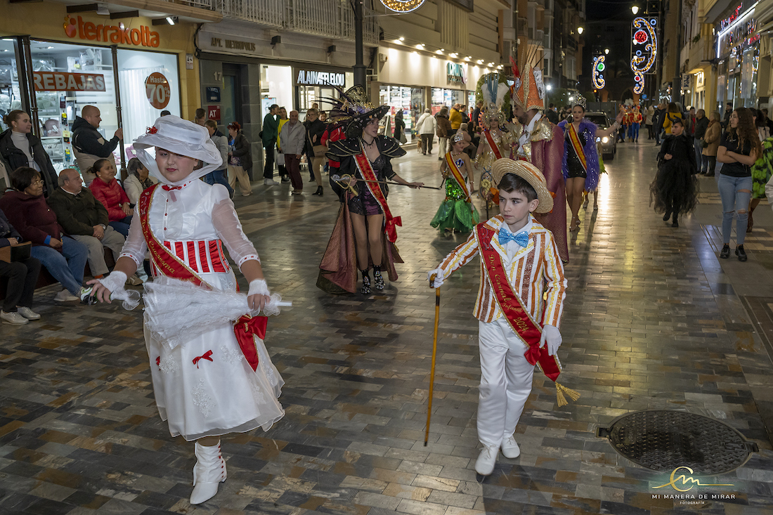 El desfile de la tarde del martes por el centro de Cartagena ha sido la primera presencia de los principales personajes adultos e infantiles del Carnaval de Cartagena'24 a cielo abierto.