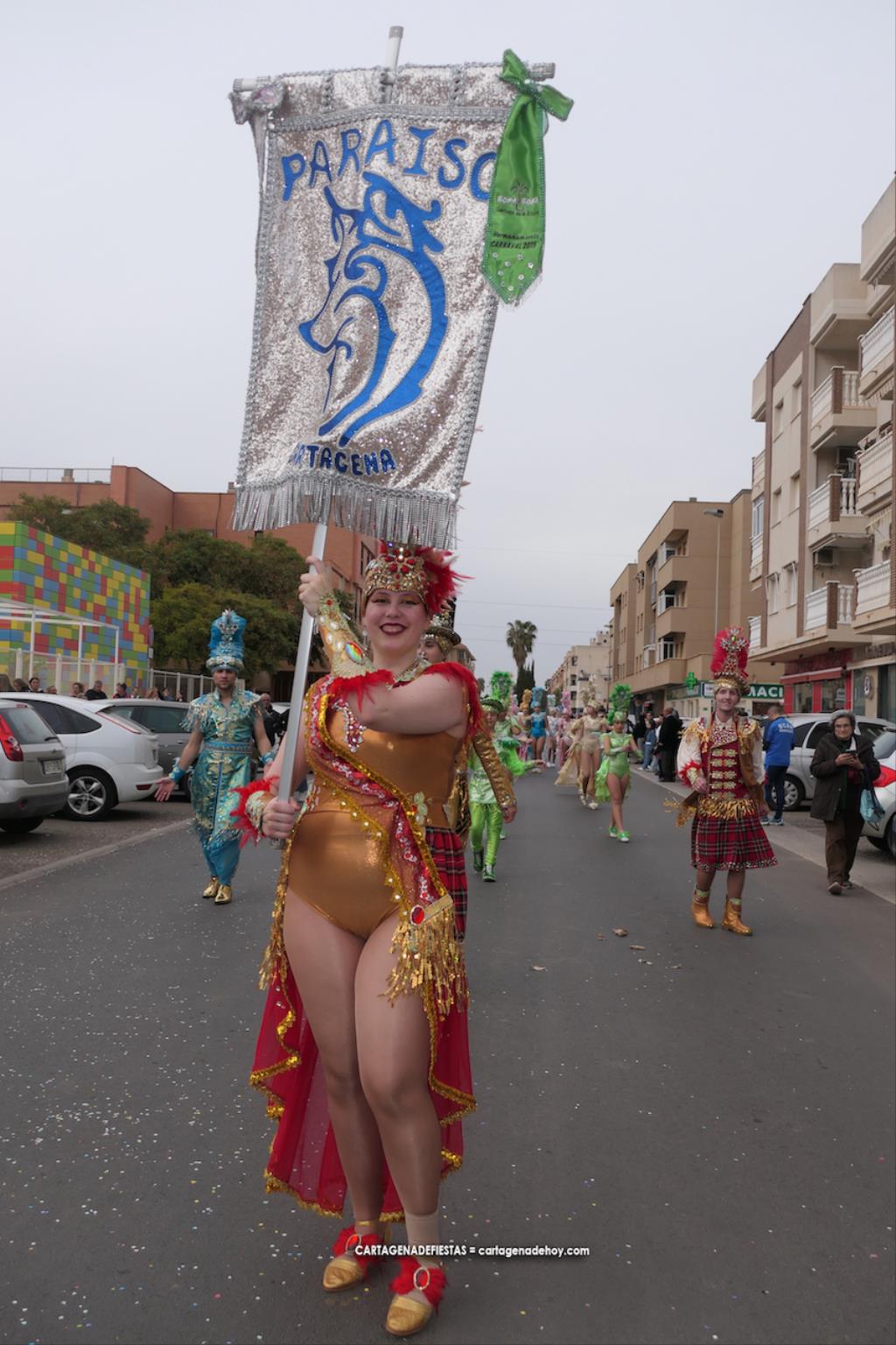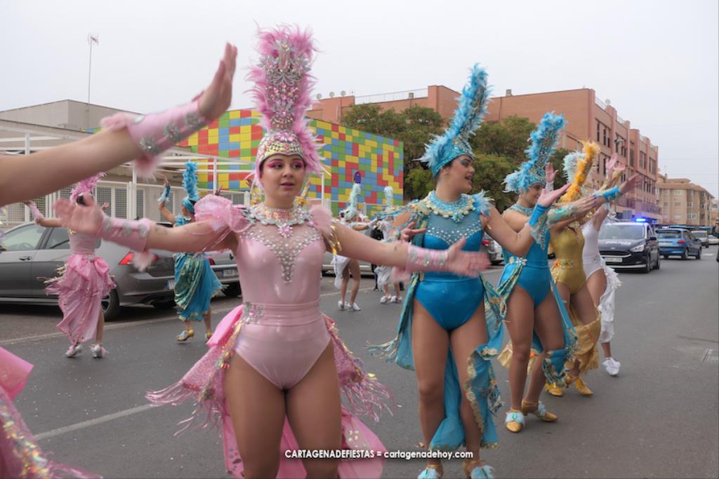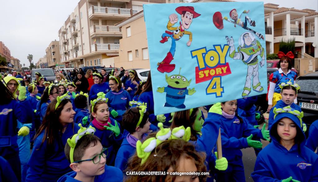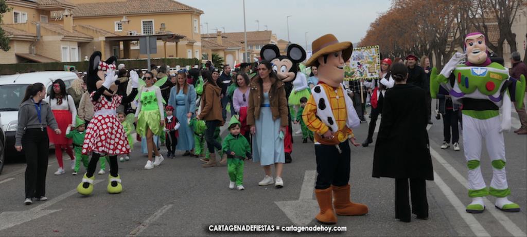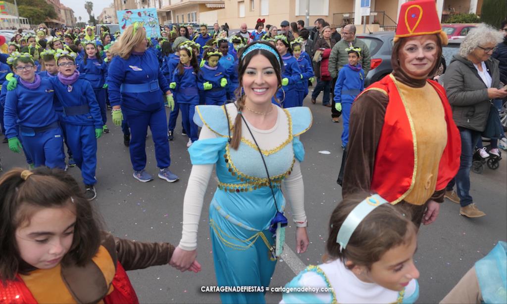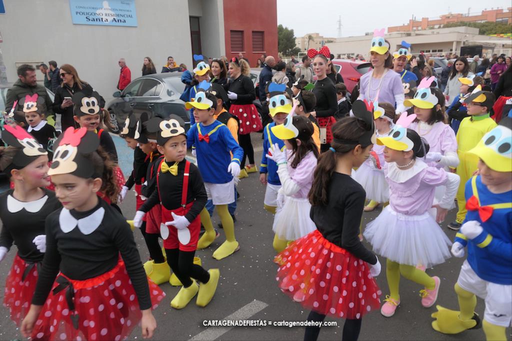 Los alumnos del Colegio Narval han atraído a numerosos familiares y vecinos en su colorido, alegre y multitudinario pasacalles carnavalero por el Polígono Santa Ana, donde ha representado conocidas películas de la factoría de Walt Disney, poniendo el colofón a la marcha la comparsa Paraíso y la asociación de vecinos.