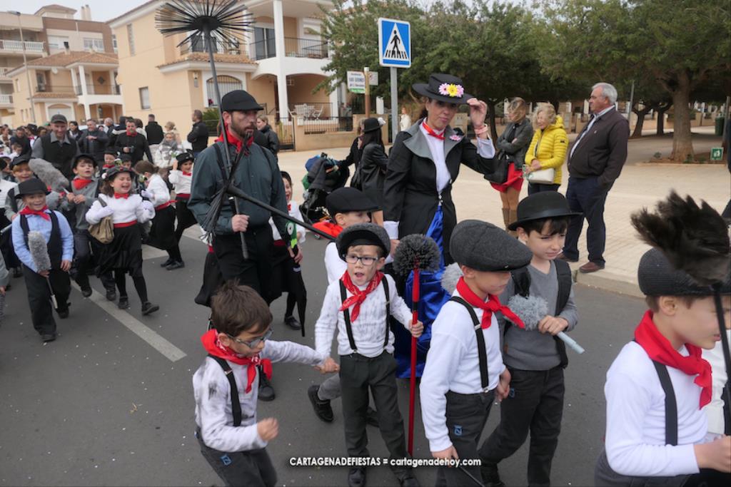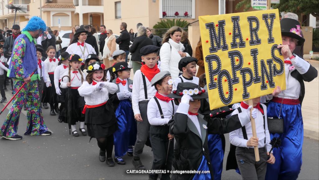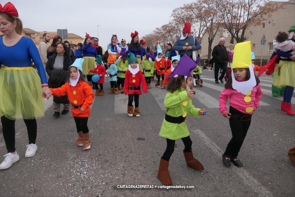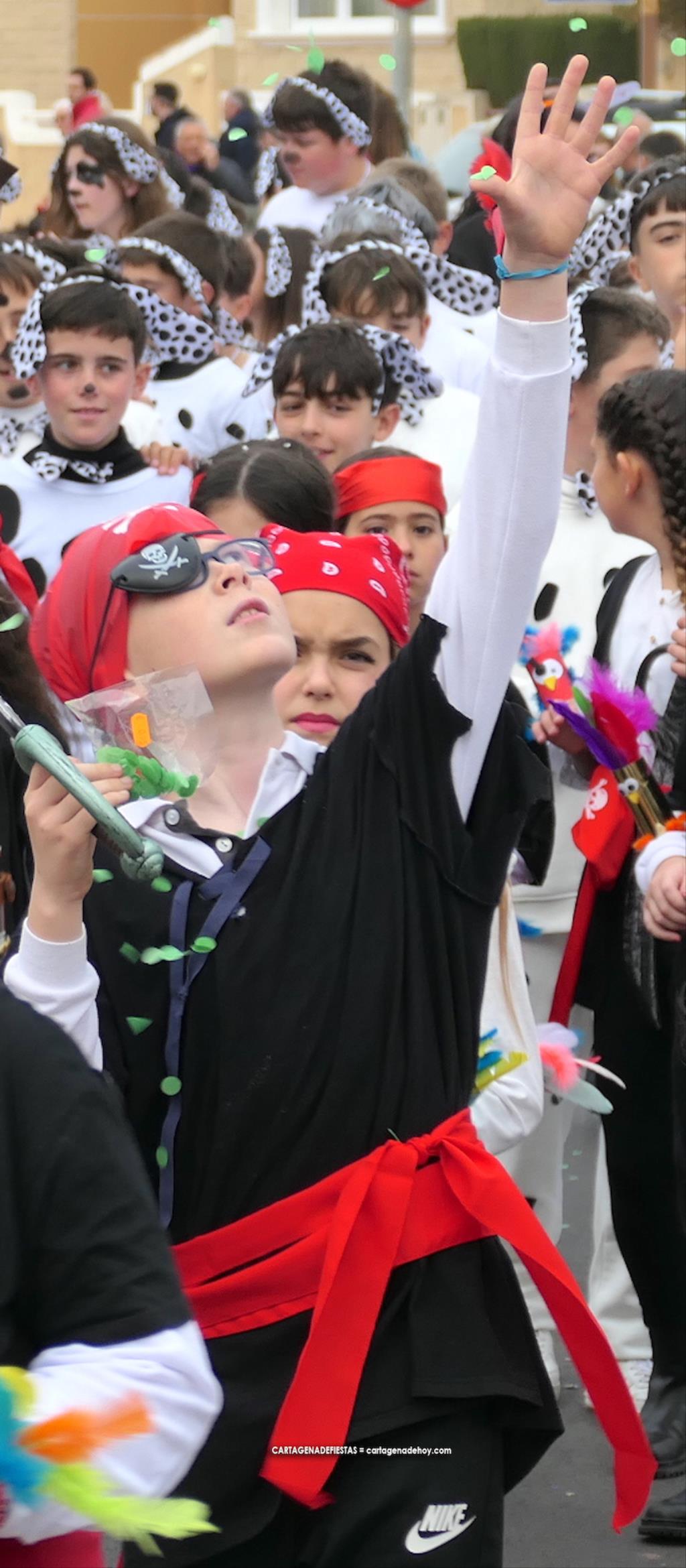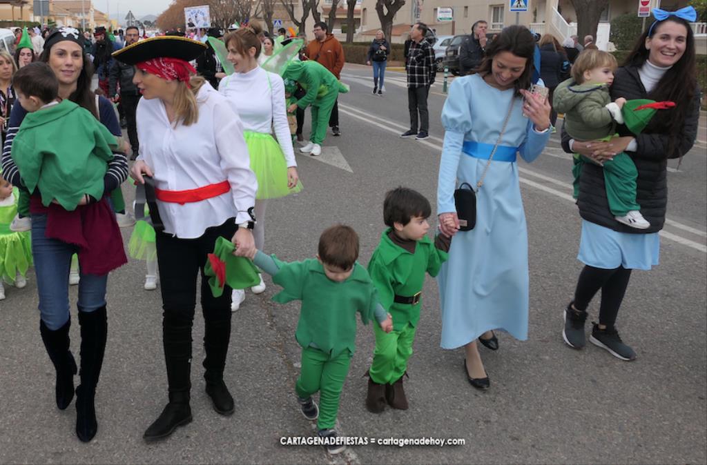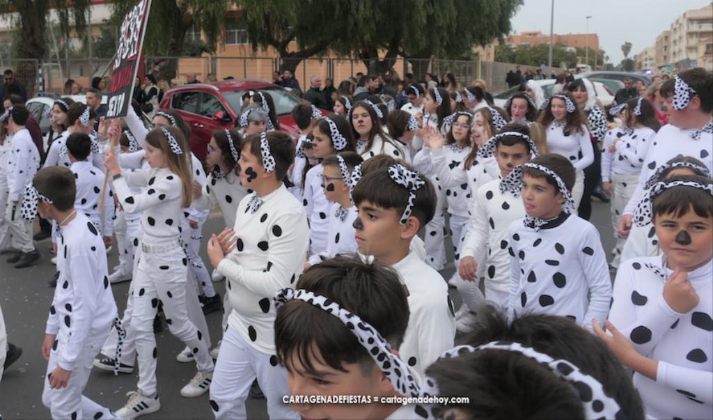 Decenas de dalmatas, piratas, enanitos, deshollinadores y otros conocidos personajes han protagonizado el gran desfile anual del carnaval del Colegio Narval, que se ha estructurado en dos grupos, con uno primero para los alumnos menores de cinco años y otro, con música, para los de las siguientes etapas educativas, cerrando una representación de la comparsa local Paraíso, que ha colaborado con este desfile al igual que la asociación de vecinos.