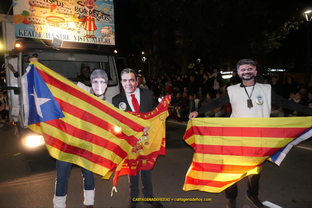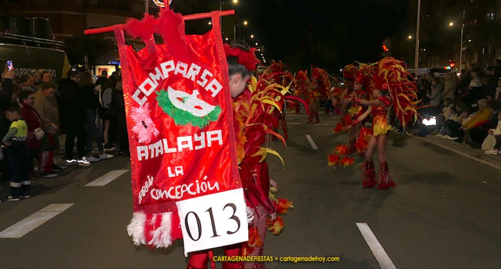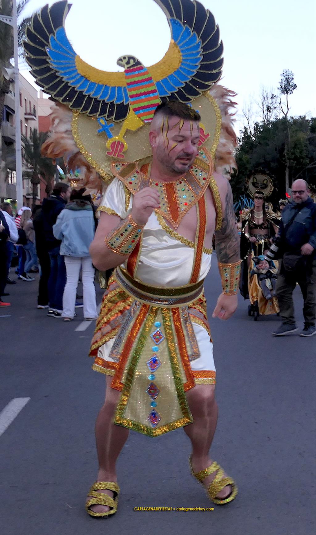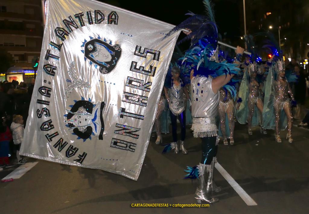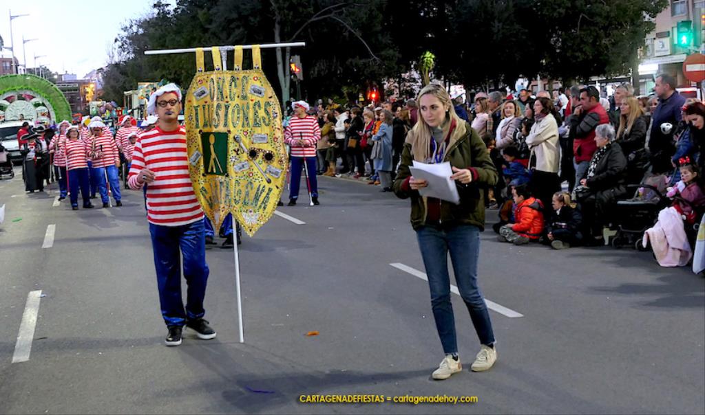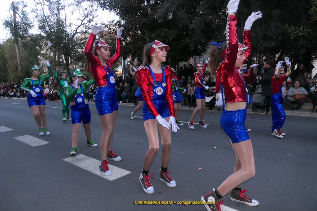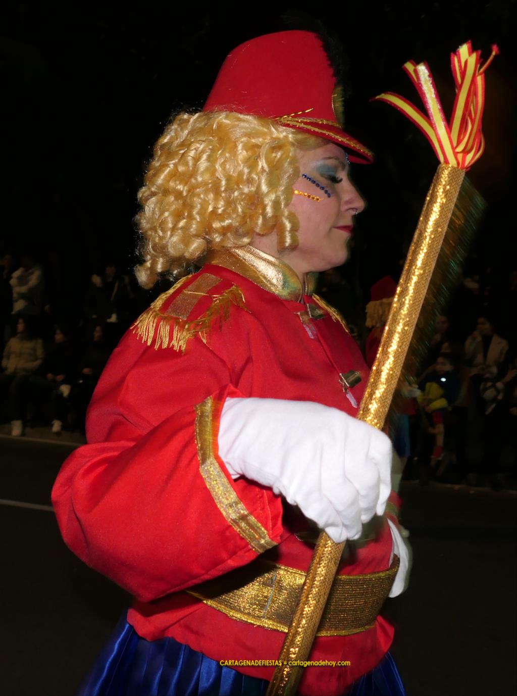 El desfile lo abrían colectivos no carnavaleros, pero habituales al desfile, como Viva Gym y los scout de Inhala Panzy de Canteras, dando paso a la carroza de la doble versión (adulta e infantil) de Don Carnal y Doña Cuaresma. A continuación las entrañables comparsas infantiles, donde muchos integrantes desmuestran ya sus ilusión por esta fiesta. Siguieron los mayores con variados disfraces, desde 'Barbie' hasta los protagonistas de 'Lo que el viento se llevó' (Barriada Virgen de la Caridad), cerrando la carroza con los reyes de este año, surgidos de La Manga.