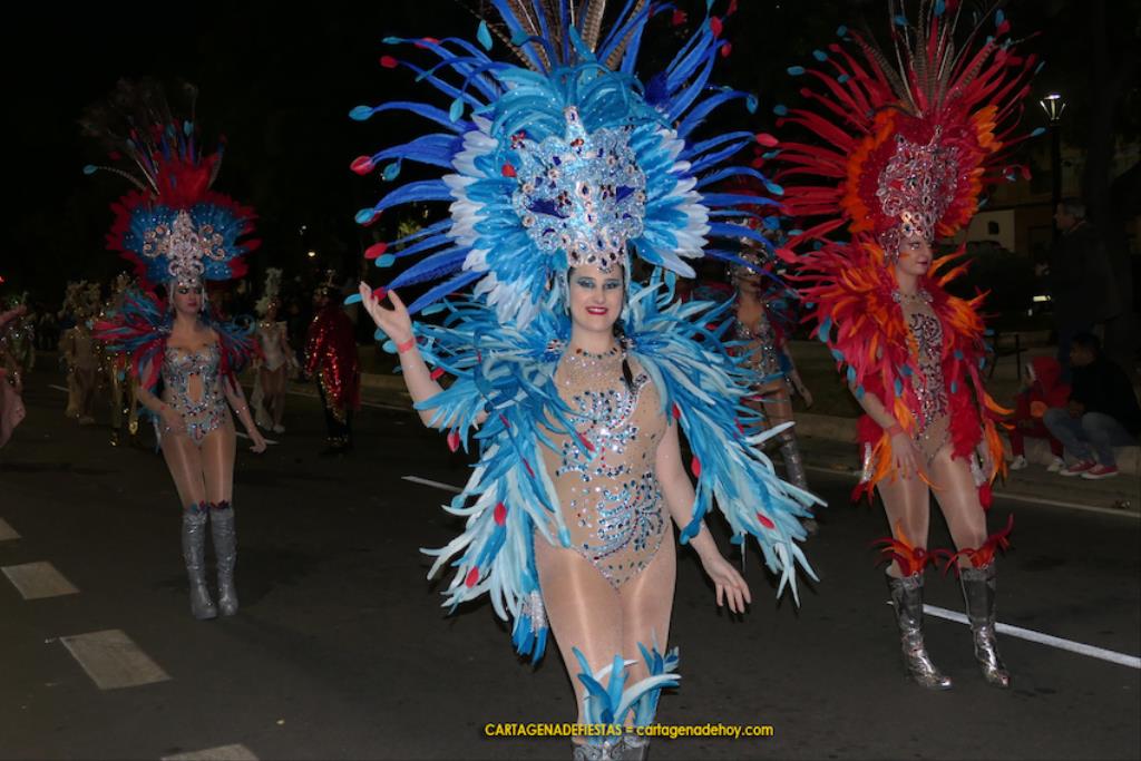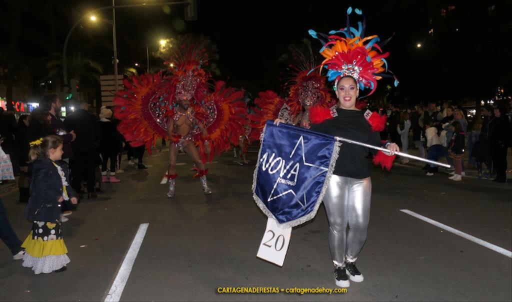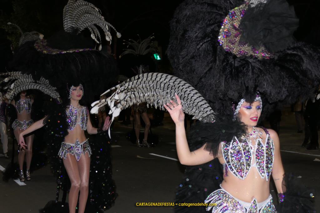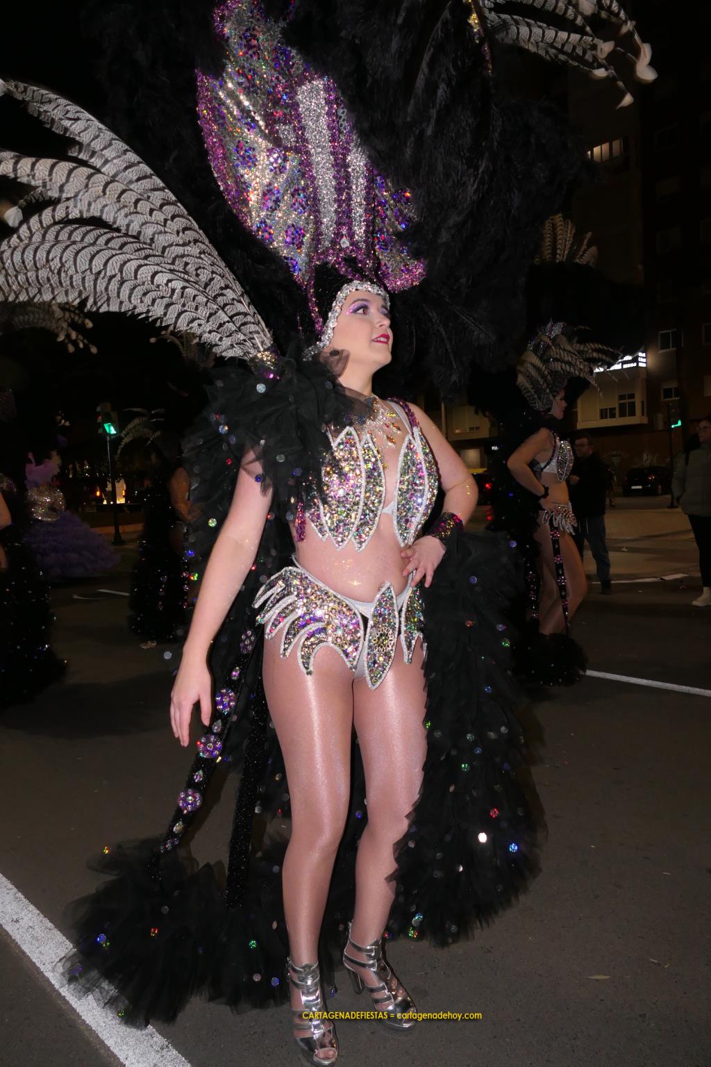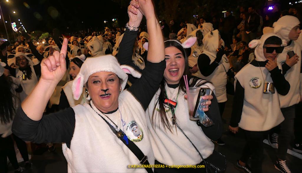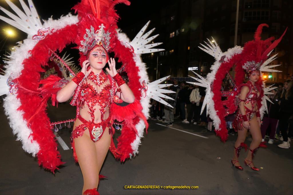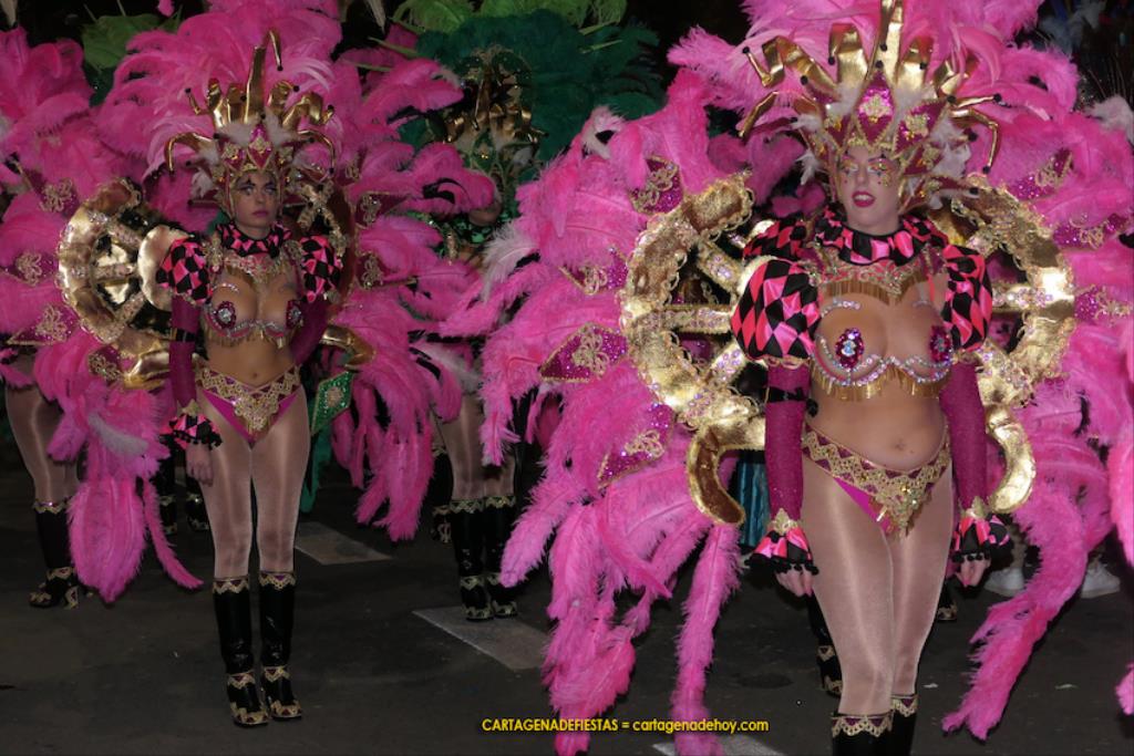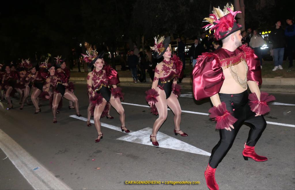 La Real e Ilustre de Vista Alegre puso la 'aborregada' crítica de este año, lo que tiene artículo propio en este periódico de Cartagena y su gente, al igual que el novedoso e inclusivo grupo de la ONCE. Nos queda referirnos a las comparsas adultas. Mucha pluma, ritmo coordinado e imaginación. Fueron, demás de las mentadas arriba: Sambao, Aporué, Atalaya, Ipanema, Divertilandia, Imagine, Renacer, Perseídas (las más 'carnales'), Deja Vu, Nova Carthago Paraíso, Antares, Ilusión de Galifa (con 3 plataformas), Las Villas de San Antón y las dolorenses de Limón y Sal.