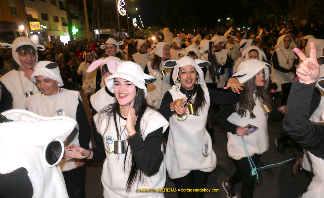 El multitudinario grupo tuvo a la mayoría de componentes representando a borregos y llevaba una camioneta desde donde lanzaba regalos al público. Salvo sorpresas, otro año más, Real e Ilustre Comparsa de Vista Alegre se llevará el premio a la crítica social del Carnaval de Cartagena. Antes de concluir, que no se nos olvidé dejar constancia de lo que apuntó Pepe Ros, uno de sus coordinadores: “La crítica de este año no va a favor de un partido u otro, sino tratando de que dejemos de ser ‘borregos’ en manos de los políticos”. Escrito queda.