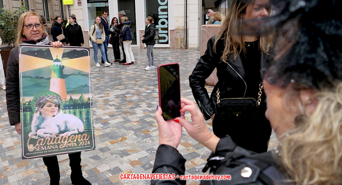 El grupo cartagenero ha participado en las chirigotas callejeras por vez primera como vencedor del concurso regional del Carnaval de Cartagena como su caracterización de 'maduritas' simpáticas y 'bordesicas'. En la foto, en la plaza de San Sebastián.