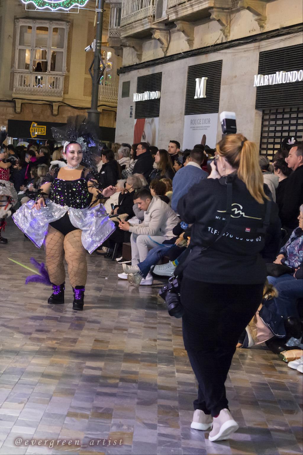 La joven cartagenera Marta Martínez (evergreen_artist) ofrece su particular visión del gran pasacalles del Carnaval de Cartagena'24 con escenas tomadas en la Alameda de San Antón y en Puerta de Murcia. La foto superior es de Salgueiro Kids.