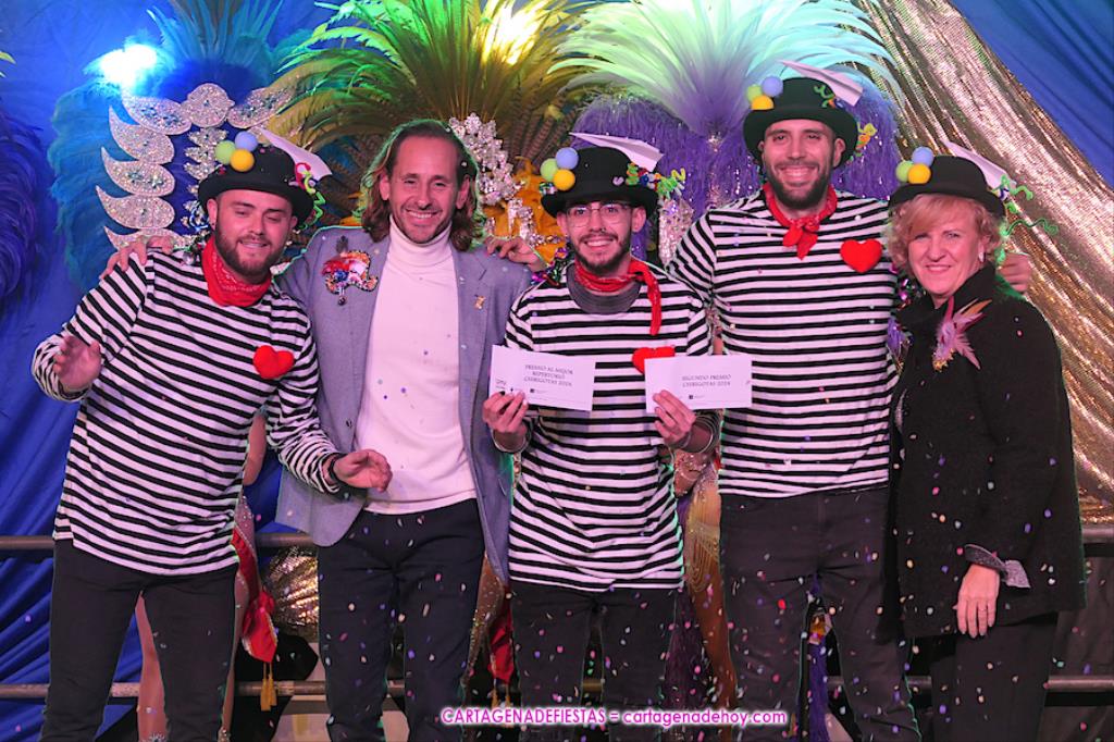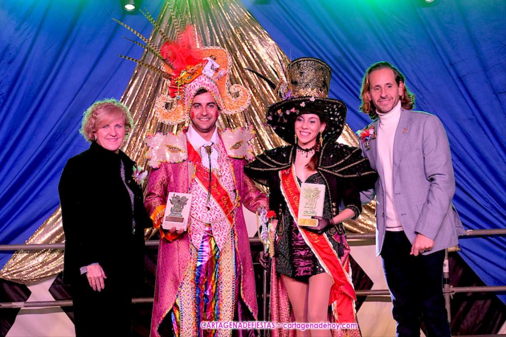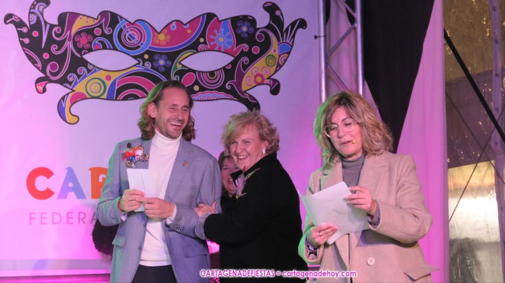 El acto de clausura, que por primera vez tuvo lugar en la carpa de la plaza de Juan XXIII, ha comenzando con la presencia de Don Carnal y Doña Cuaresma infantiles, respectivamente, Lucas Cegarra Sánchez y Elena Ortega Sánchez, en el escenario junto al presidente de la Federación del Carnaval de Cartagena, Eduardo Pignatelli Rodríguez, y la edil de Festejos, Paqui Martínez Sotomayor. El primero ha agradecido a todos sus aportaciones a una edición carnavalera que ha resultado un éxito, mientras que la concejala ha hecho hincapié en la gran manifestación popular que esta fiesta por el municipio. Tras la entrega de premios infantiles, llegó el turno de los adultos, con presencia esta vez de Samuel y Raquel Rubio López como, respectivamente, Don Carnal y Doña Cuaresma. La anécdota del acto estuvo en el cumpleaños feliz cantado por 'Los picoesquina' sobre el escenario a la vicepresidenta de la Federación de Carnaval de Cartagena, cuyas fotos publicamos en otro artículo de este día.