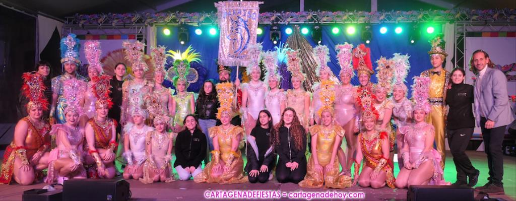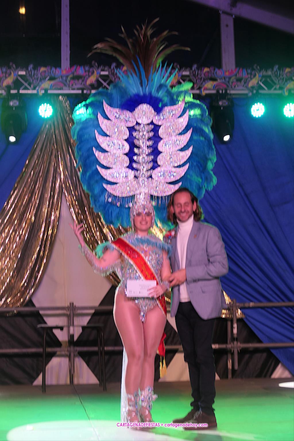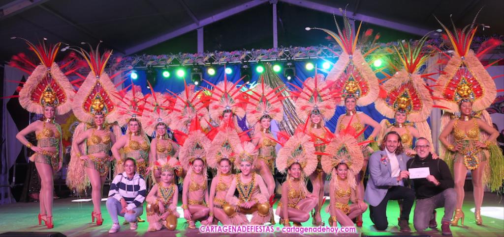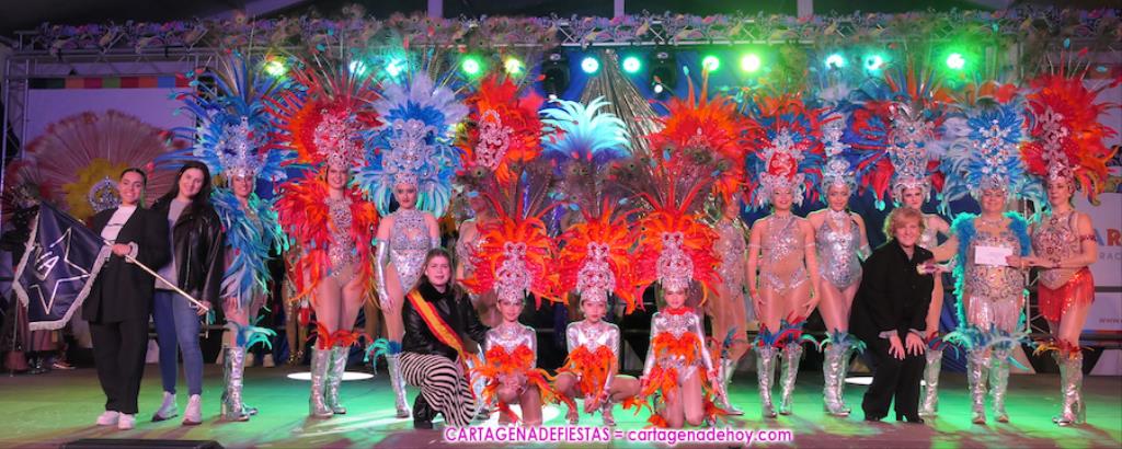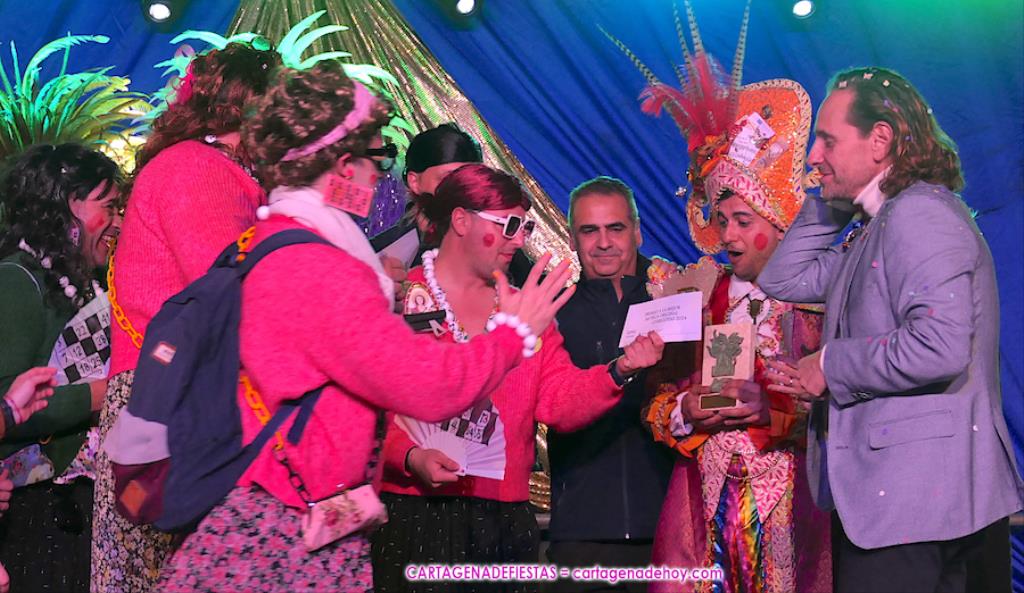 La entrega de premios a reina, damas, grupos coreográficos y comparsas de infantiles y adultos del Carnaval'24 de Cartagena, además del certamen de chirigotas y a quienes han encargado a Don Carnaval y a Doña Cuaresma, protagonizaron el cierre de esta edición, en la que la edil de Festejos resalta el constante crecimiento que está experimentando esta fiesta en el municipio. En la foto, el broche con Salgueiro como mejor grupo del desfile general.