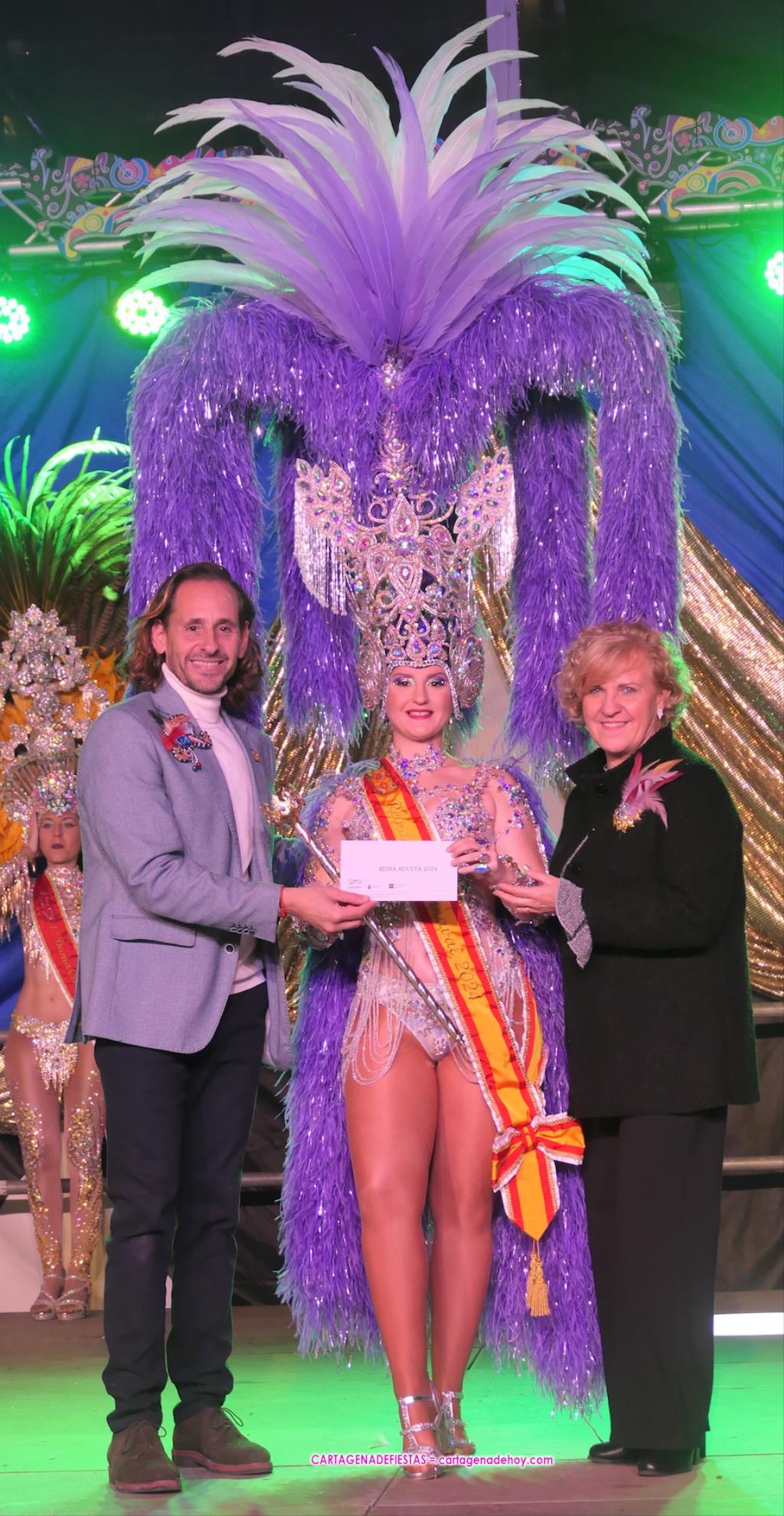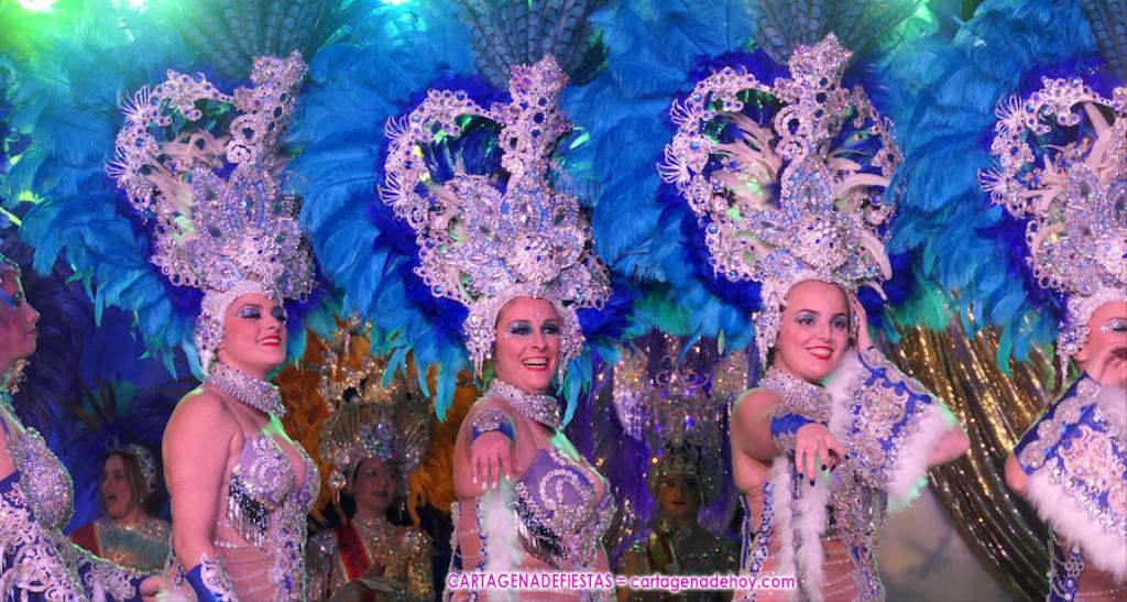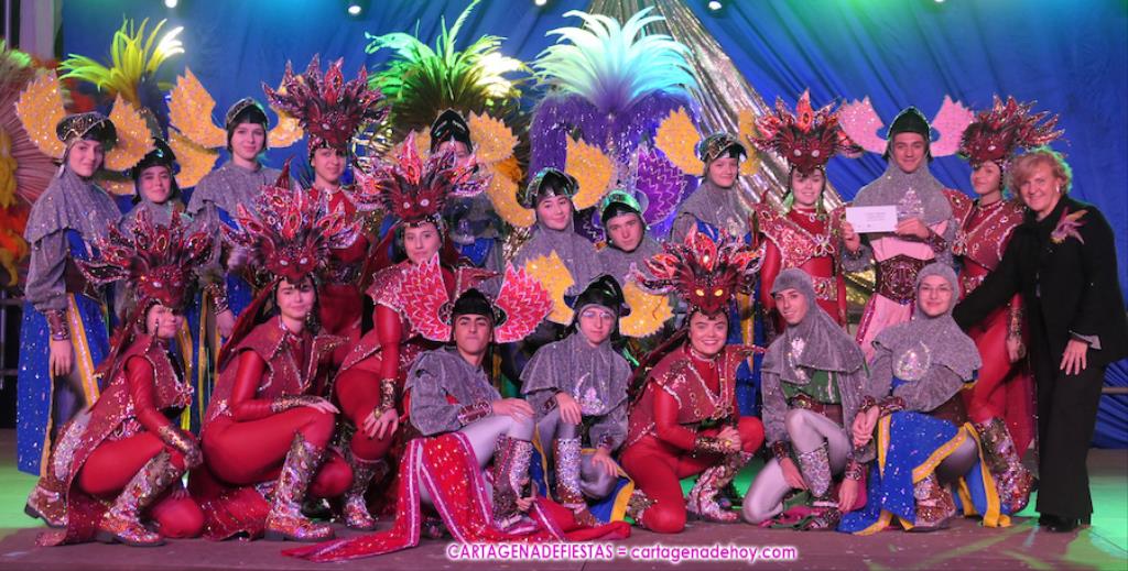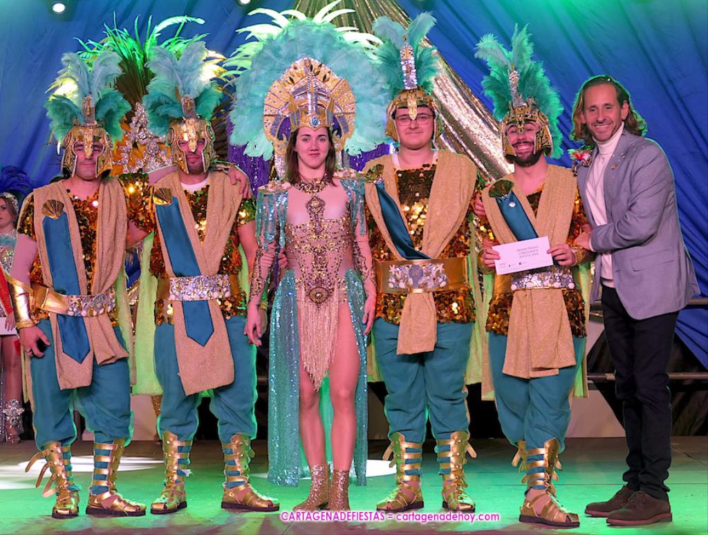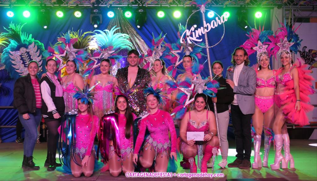 La entrega de premios a reina, damas, grupos coreográficos y comparsas de infantiles y adultos del Carnaval'24 de Cartagena, además del certamen de chirigotas y a quienes han encargado a Don Carnaval y a Doña Cuaresma, protagonizaron el cierre de esta edición, en la que la edil de Festejos resalta el constante crecimiento que está experimentando esta fiesta en el municipio. En la foto, el broche con Salgueiro como mejor grupo del desfile general.