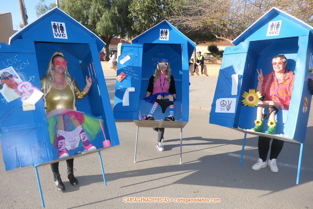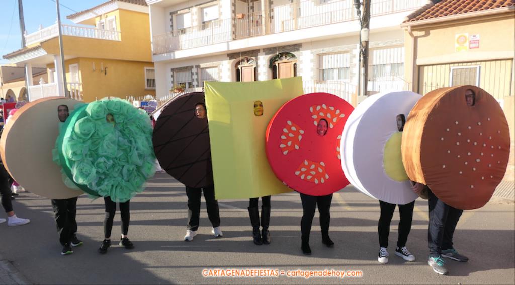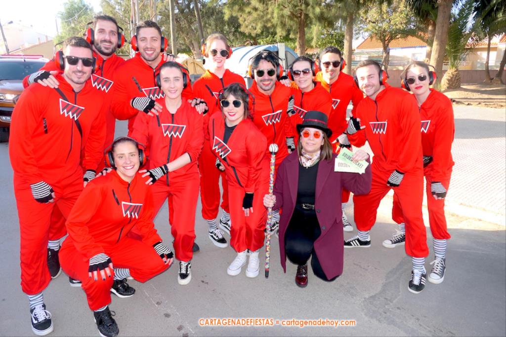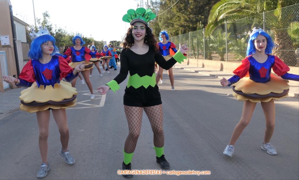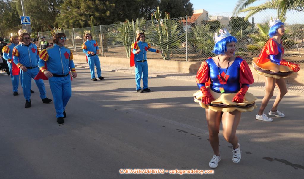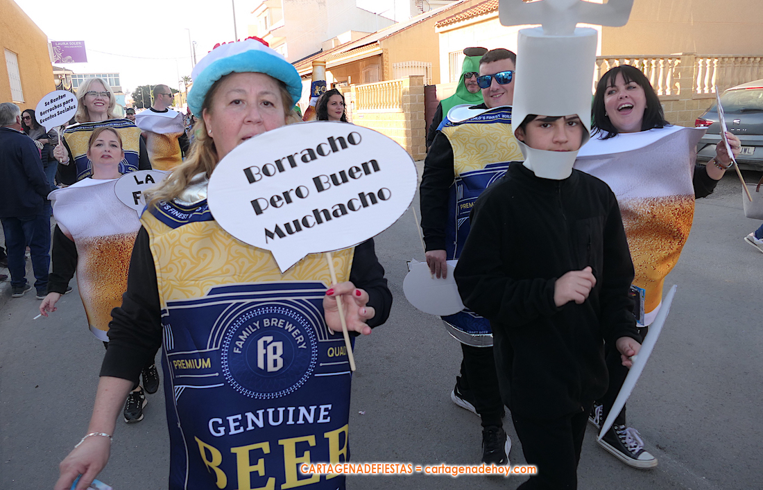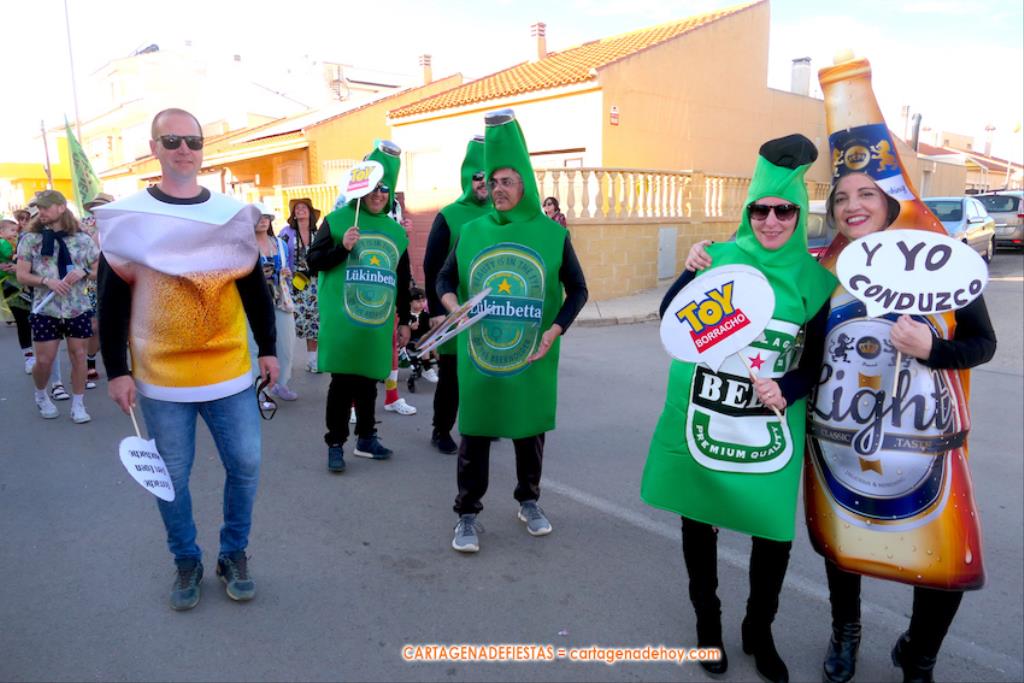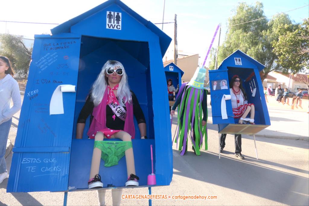 Un gran desfile de carnaval reunió a 23 grupos con temáticas muy variadas, entre las que figuraban los peñistas de 'Arrebataos' llevando cada uno puestos portátiles del mercado muy completos. Los baños públicos, los dioses griegos y romanos, las hamburguesas y Caperucita Roja fueron los restantes premiados, junto a los bailes coreográficos de la comparsa 'Esmeralda Torres'.
