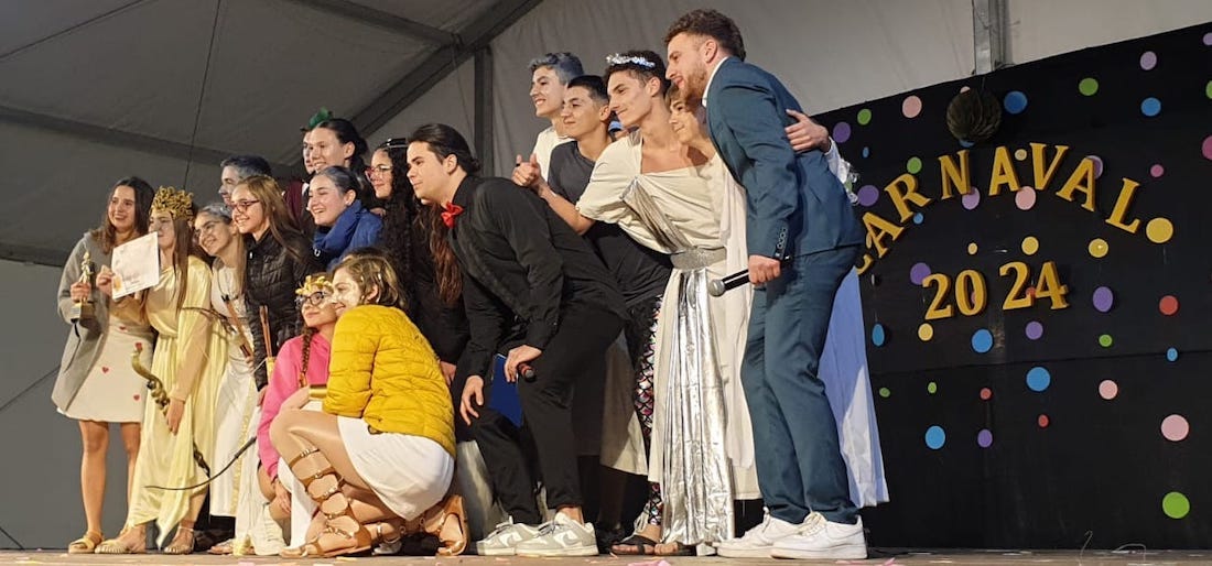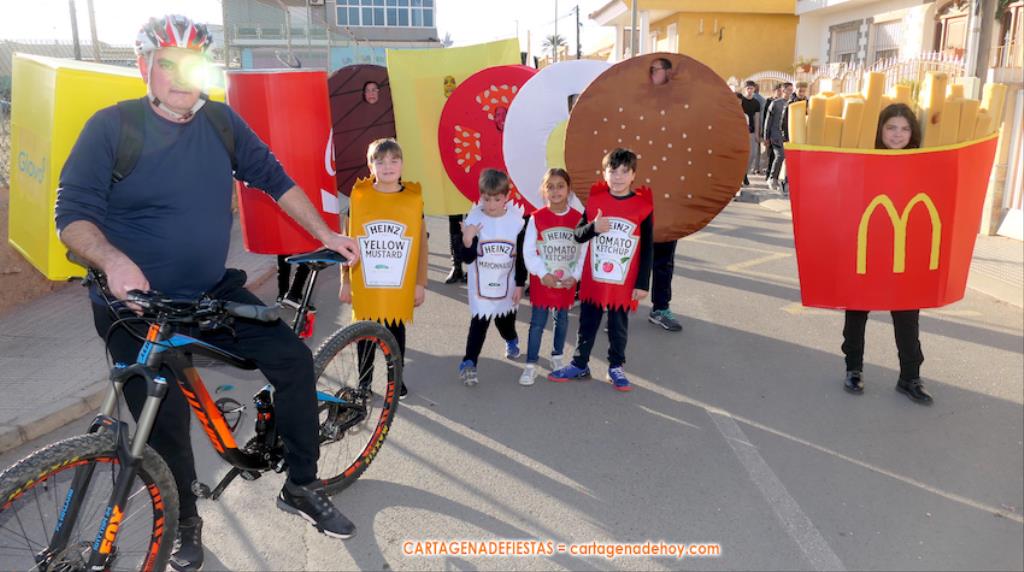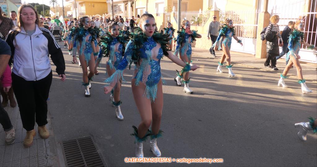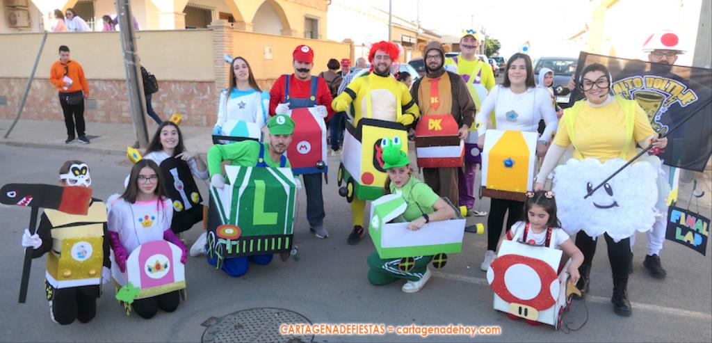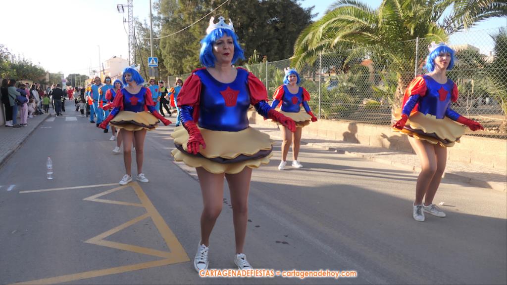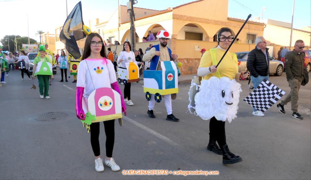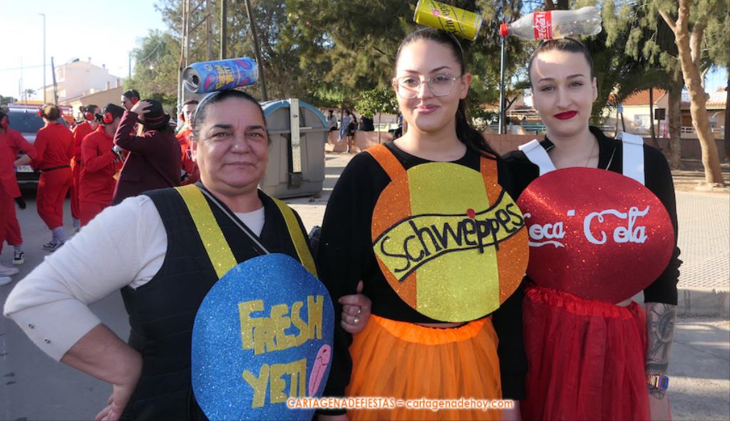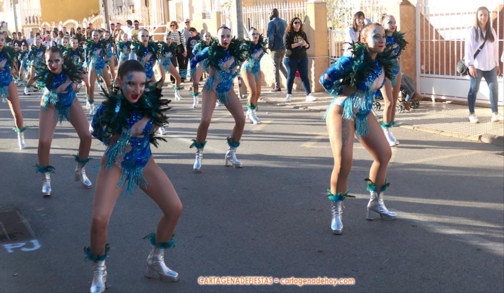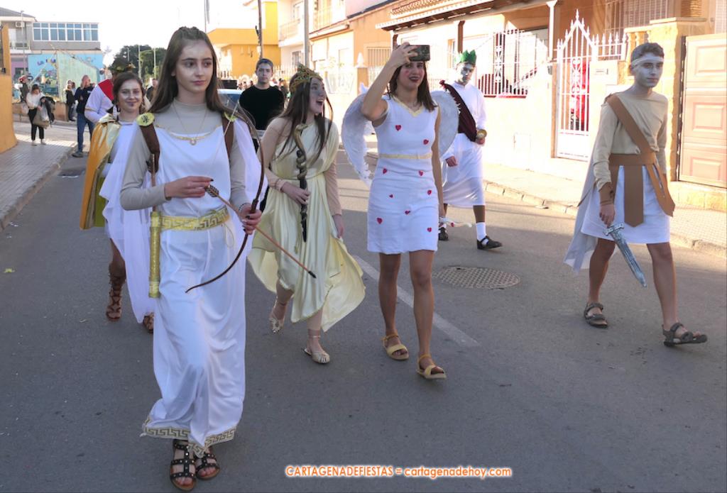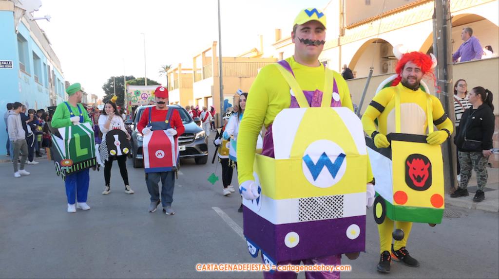 Un gran desfile de carnaval reunió a 23 grupos con temáticas muy variadas, entre las que figuraban los peñistas de 'Arrebataos' llevando cada uno puestos portátiles del mercado muy completos. Los baños públicos, los dioses griegos y romanos, las hamburguesas y Caperucita Roja fueron los restantes premiados, junto a los bailes coreográficos de la comparsa 'Esmeralda Torres'.