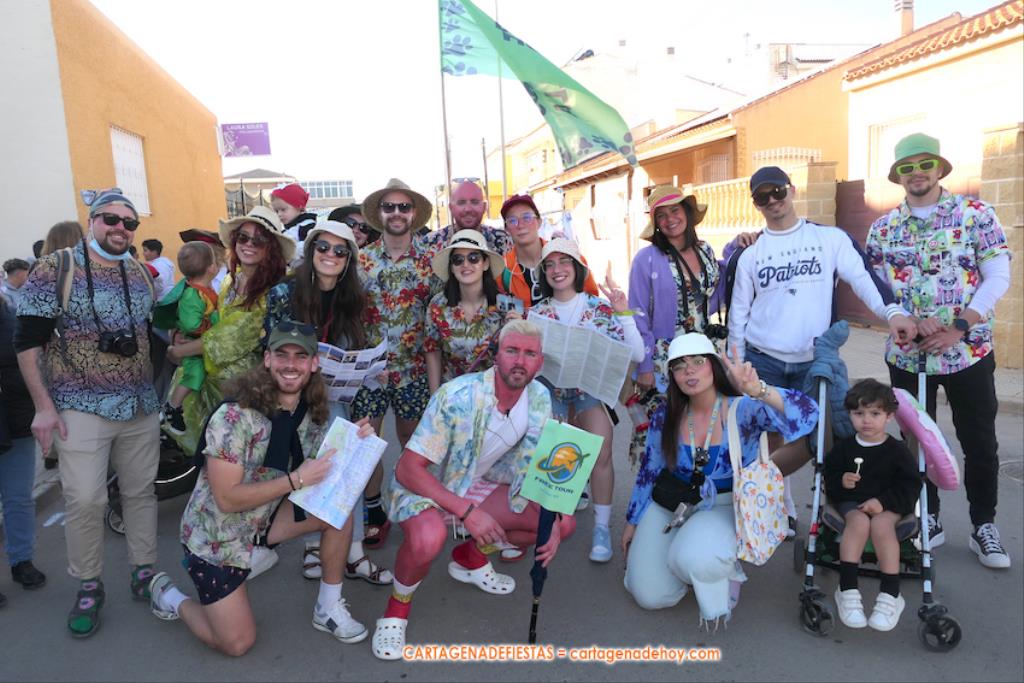 El punto de destino de la multitudinaria, colorida y simpática comitiva fue la carpa festera, donde, para decir los premios de este 2024, se encontraba el jurado formado por Antonia Torres Bolea (Plataforma Juvenil de La Palma),