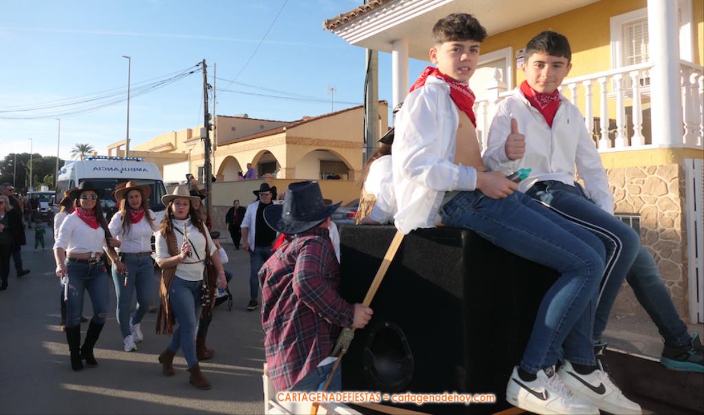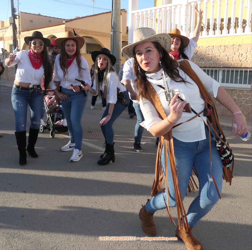 El desfile, organizado por la Plataforma Juvenil de La Palma, lo abría una representación de la comisión de fiestas y la peña 'No problem' con los príncipes galleteros. Detrás, policías y cacos con perro incluido. El pasacalles también ofreció variedad de personajes, como Mary Poppins, Peter Pan, Mulán, Mario Bross o Men&Black ('Los hombres de negro' con su extraterrestres), además de grupos de turistas guiris, hippis, arqueros de San Valentín, barbis, futbolistas, vaqueros, dioses..., siendo las chicas del grupo de Esmeralda Torres el que protagonizó el capítulo coreográfico.