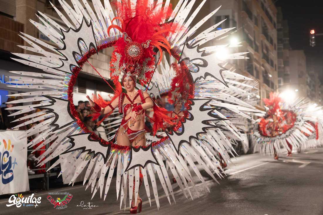 La comparsa cartagenera de la barriada de José María Lapuerta ha lucido sus florales fantasías en uno de los desfiles que se han celebrado en el carnaval aguileño, declarado de interés turístico internacional, y que comenzó el 2 de febrero y culminará el próximo sábado.