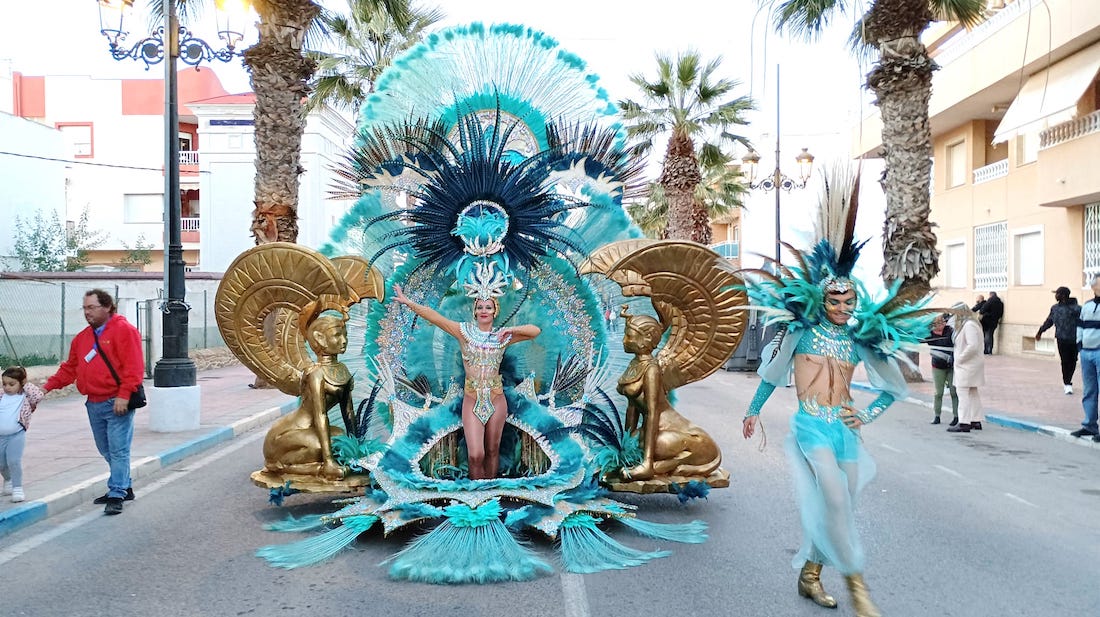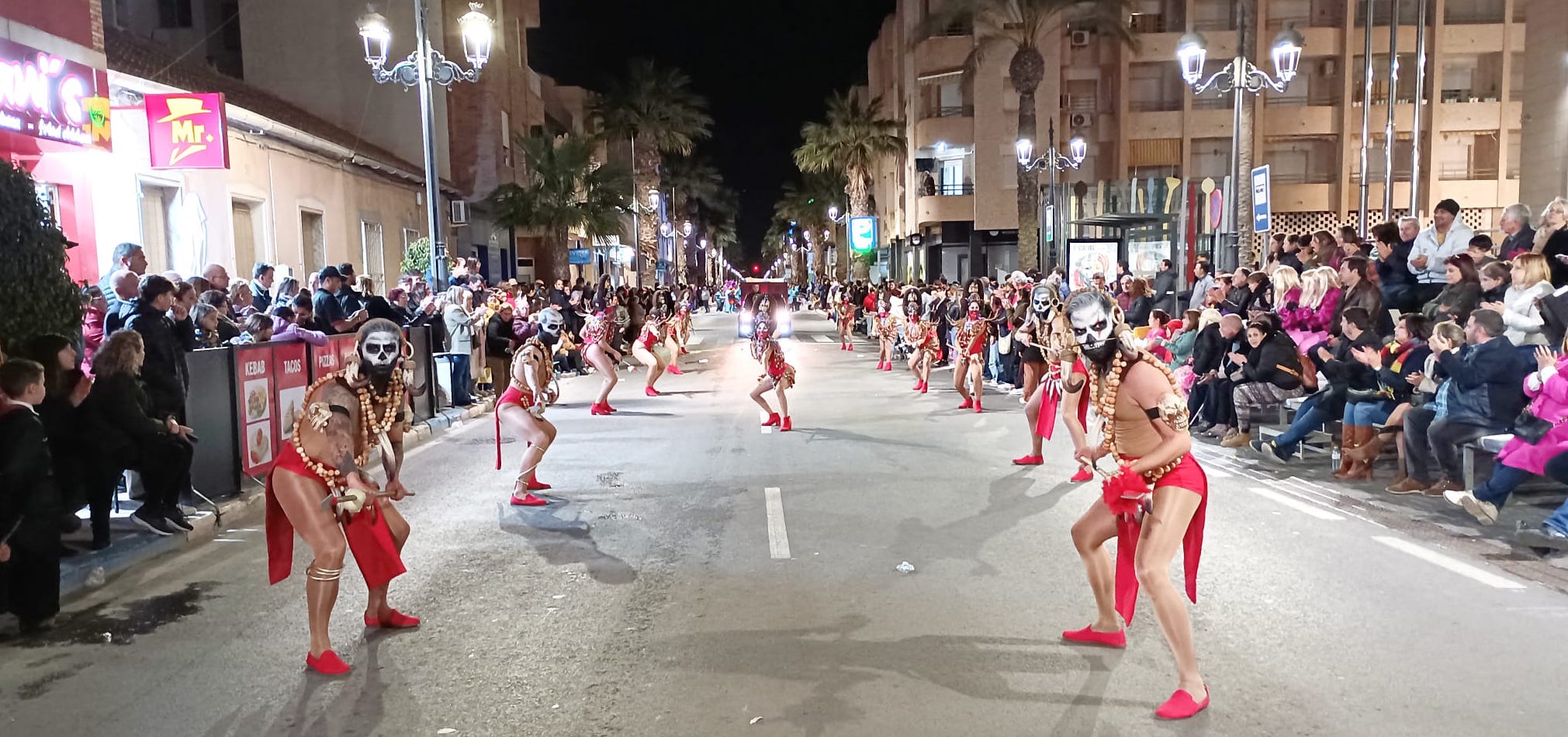 Una treintena de comparsas y grupos de baile, algunos locales y otros venidos de diferentes puntos de la Región de Murcia y localidades vecinas, formaron parte del Gran Desfile de Carnaval que reunió a miles de vecinos y visitantes que no quisieron perderse este espectáculo de baile, música y color.