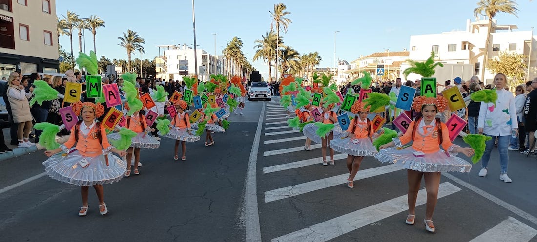 En la categoría de comparsas locales, el primer premio fue para ‘Elite Danza’, el segundo se lo llevó la ‘Comparsa Universo’ y el tercer premio lo ganó el grupo más multitudinario de todo el desfile formado por las AMPAS de los cuatro centros educativos del municipio.