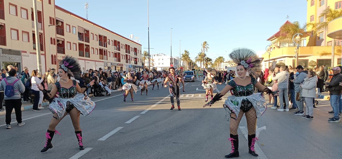 El grupo coreográfico de la Barriada Virgen de la Caridad consigue, al igual que en 2023, el primer puesto de las comparsas foráneas en el gran desfile carnavalero del vecino municipio marmenorense, tras un desfile que también contó con la participación de los cartageneros de 'Salgueiro Kids' y 'Limón&Sal'.