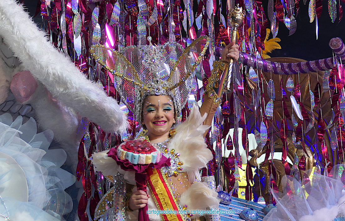 La chica, de 9 años de edad, vecina de Torreciega y que lució una fantasía creada por Alfonso Sánchez inspirada en ‘La historia interminable’, es elegida como la ‘peque-reina’ de una gran fiesta cartagenera que sorprende con un escenario de 330 metros cuadrados, tras una ampliación de 80. GALERÍA DE FOTOS (pinchar aquí)