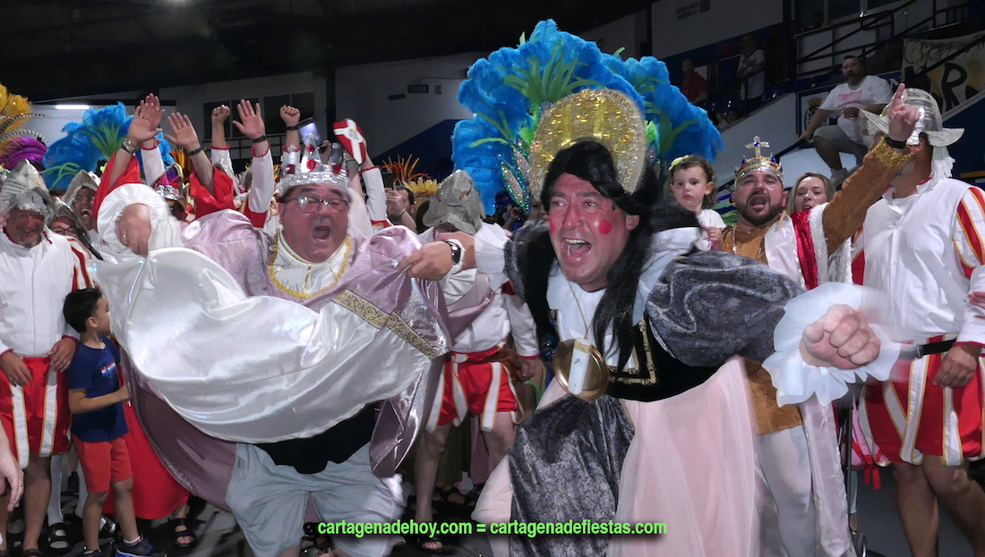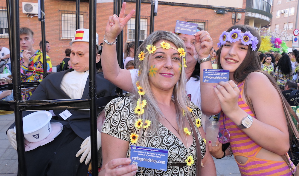 El Carnaval de Cartagena 2022 puso fin a su cuadragésimo primera edición con el desfile de comparsas, chirigotas y personajes premiados en el pabellón Usell de Guimbarda, donde el habitual calor de esta instalación en verano se hizo notar, aunque no por ello restó alegría entre los galardonados.