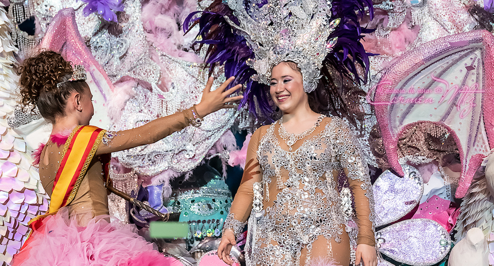 La fotógrafa cartagenera ofrece a los lectores de Cartagena de Hoy (Cartagena de Fiestas) las imágenes captadas anoche, durante la celebración de la gala de elección de reina infantil 2022. En la foto adjunta a estas líneas se observa el momento previo a la felicitación entre la anterior reina (Sara Lisón, de la comparsa Salgueiro) y la recién elegida (Daniela Vidal, de Aradia).