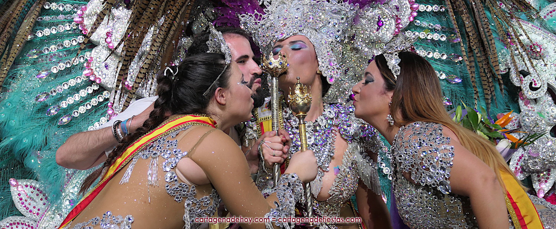 “Estoy encantada, pero este éxito es de toda la comparsa Aradia, pues se ha trabajado y arriesgado mucho”, expresa la reina del Carnaval de Cartagena 2022, quien ejerce como docente en el colegio de San José Obrero y que se ha multiplicado para sacar adelante su trabajo, la preparación como candidata y las oposiciones que tiene el próximo día 18. Miguel Lorente, presidente de la comparsa y diseñador de la fantasía, expresa que se está viviendo “un momento esplendoroso” en el grupo, “que aún no nos lo creemos”.