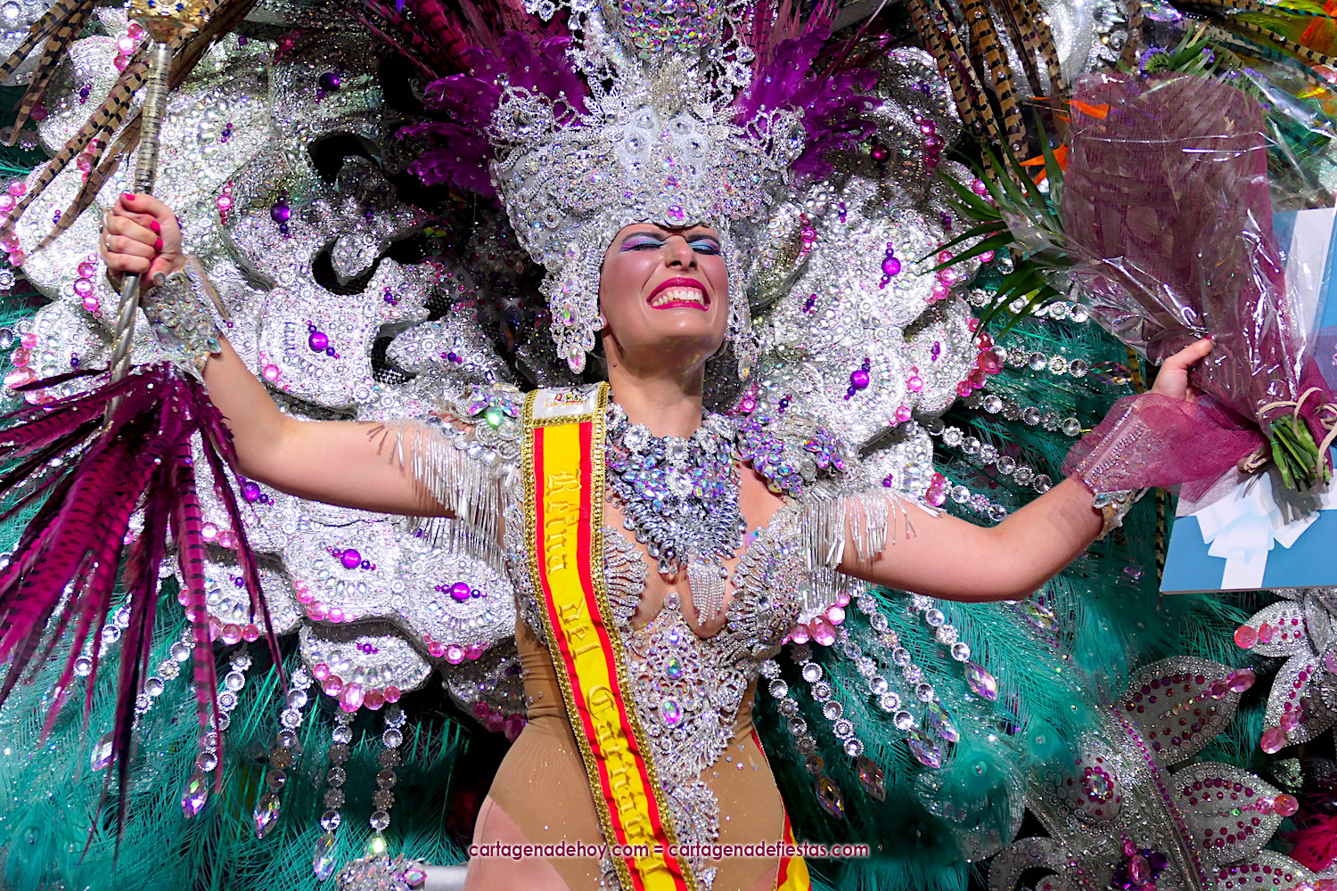 Rosana Yepes Soto es la gran reina del Carnaval de Cartagena 2022 con la fantasía ‘Oshun, diosa de Bayamo’, que llevaba centenares de cristales y más de diez mil plumas de pavo real, entre otros componentes, con lo que su comparsa continúa el éxito de 2020 con el nuevo logro de 2022 y redondea una brillante edición en la que también se ha llevado el cetro infantil. GALERÍA DE FOTOS (pinchar aquí)