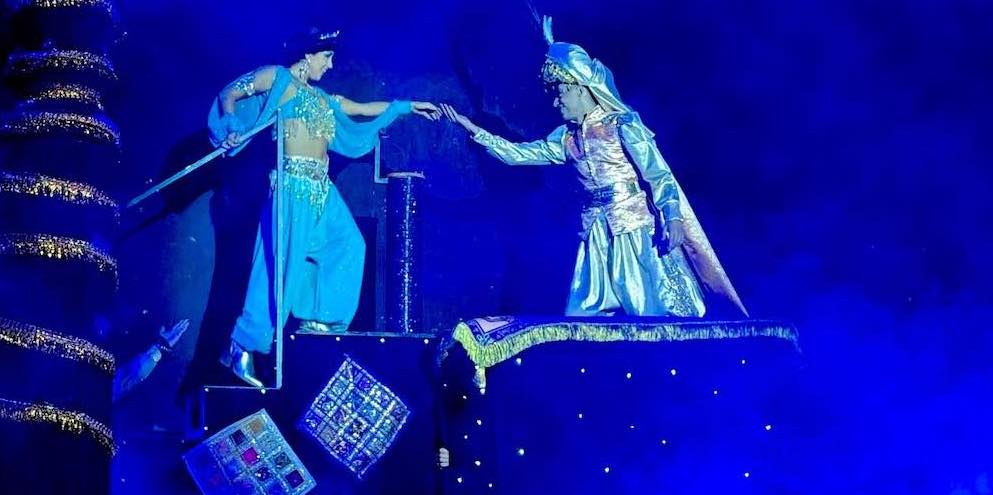Cientos de personas asistieron a la fantasía ofrecida en La Unión por el grupo coreográfico cartagenero de 'Renacer'. Hubo música, comparsas de carnaval, 'drag-queen' y, entre otros alicientes, coreografías recreadas en 'Aladdin' dentro del Mercado Antiguo con un muy atractivo 'preshow' exterior con orquesta y baile aéreo.