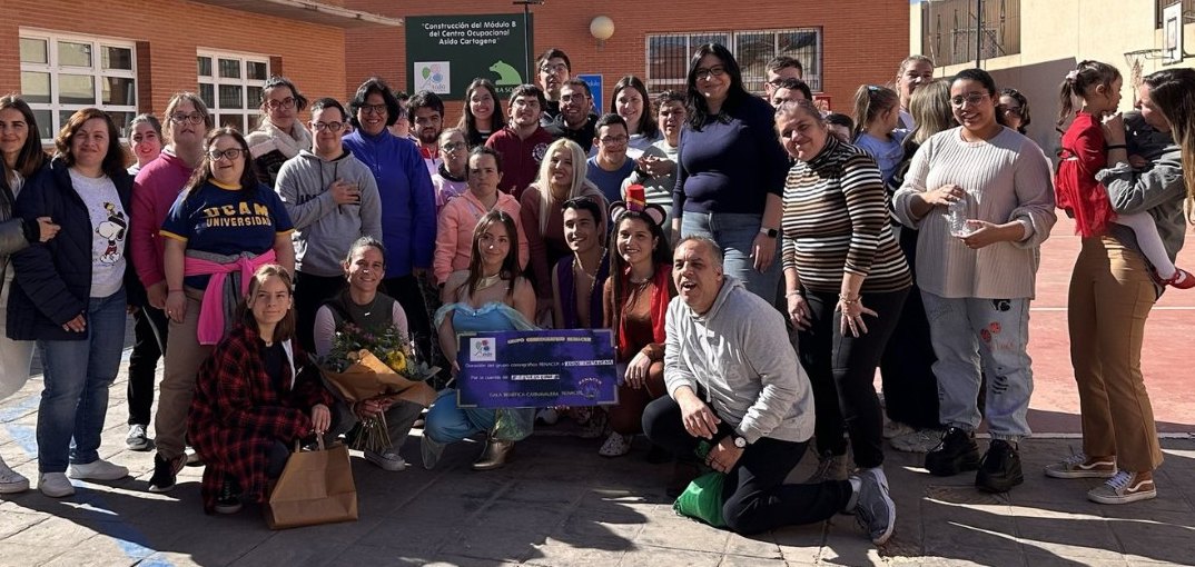 El grupo coreográfico carnavalero que dirige Lorena Ortiz ha llevado a cabo la entrega a Asido Cartagena del dinero recaudado por la celebración de su espectáculo 'Un mundo ideal' en el Mercado Público de La Unión.