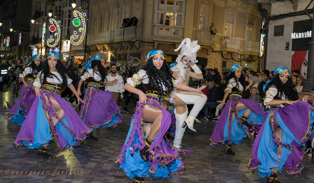 La comparsa de la cartagenera barriada de San Félix ha abierto el plazo de inscripciones, debiendo acudir por las tardes los interesados al local social. En las fotos, escenas del grupo en el desfile del Carnaval de Cartagena'24.