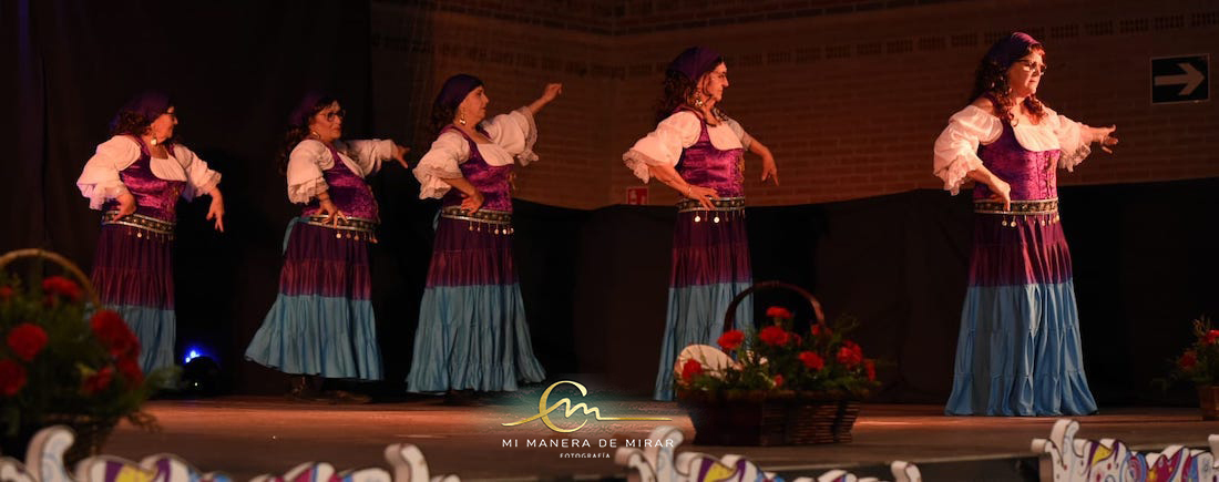 Componentes del grupo de mayores de la Barriada de Virgen de la Caridad de Cartagena que participaron en el desfile del Carnaval de Cartagena’24 con disfraces de la legendaria película ‘Lo que el viento se llevó’.