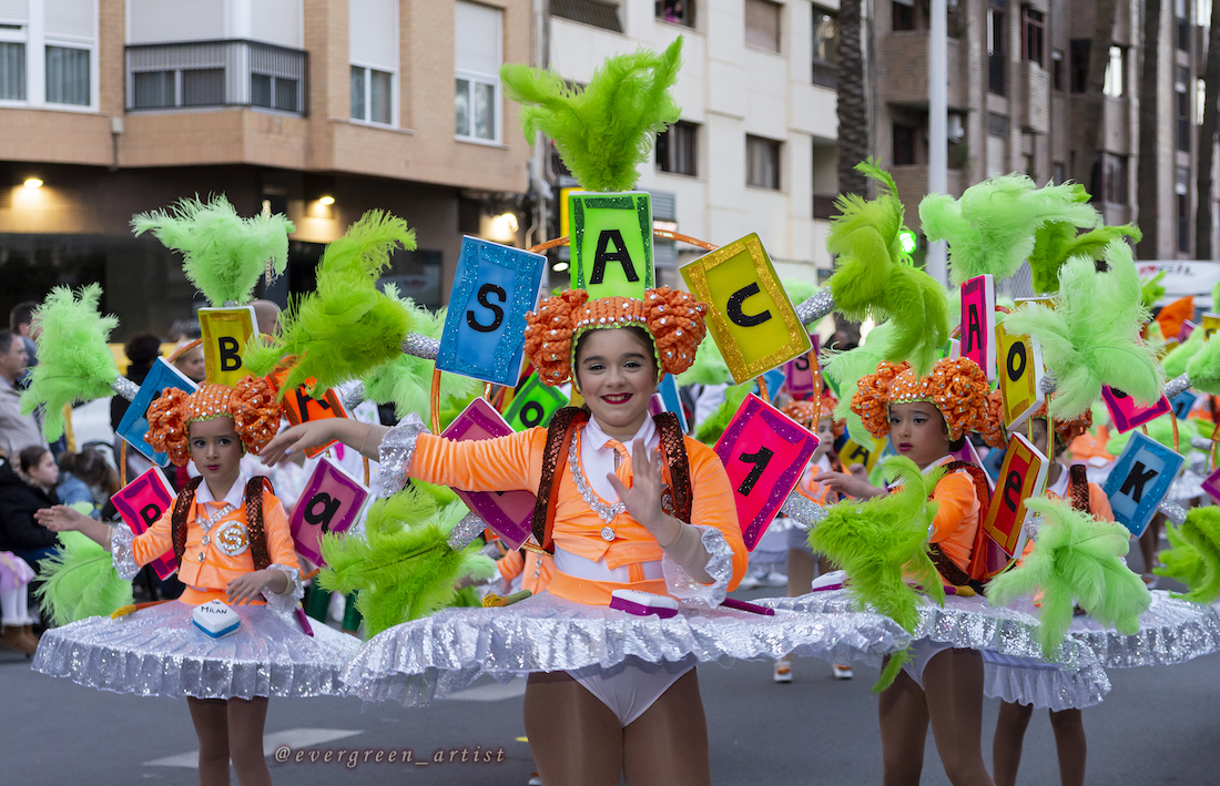 La joven cartagenera Marta Martínez (evergreen_artist) ofrece su particular visión del gran pasacalles del Carnaval de Cartagena'24 con escenas tomadas en la Alameda de San Antón y en Puerta de Murcia. La foto superior es de Salgueiro Kids.