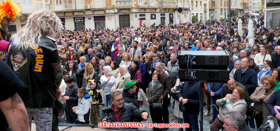 El novedoso epicentro del Carnaval de Cartagena'24 en su recta final en la plaza de Juan XXIII ha tenido muy buena respuesta popular, ofreciendo diferentes temáticas y ambientes, según la hora.
