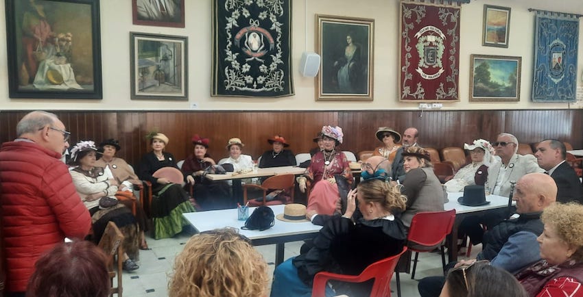 El cronista oficial de Los Dolores, a quien se observa explicando la historia del Casino Cultural en una visita reciente del movimiento modernista de la Asociación de Mujeres Carmesí, dará a conocer la obra 'Las cenizas del alma' en este mismo escenario esta tarde-noche a partir de las 19.30 horas con entrada gratuita.